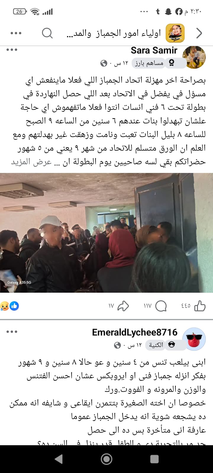 وعبر عدد من أولياء الأمور عن استيائهم من الوضع، مؤكدين أن الأطفال تعرضوا للإحراج الشديد أمام الجمهور والزملاء، وأن بعضهم لم يتمكن من المشاركة رغم استعدادهم الطويل للبطولة.
