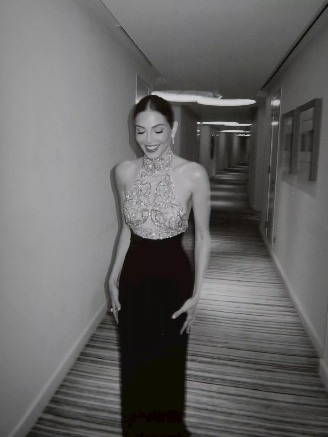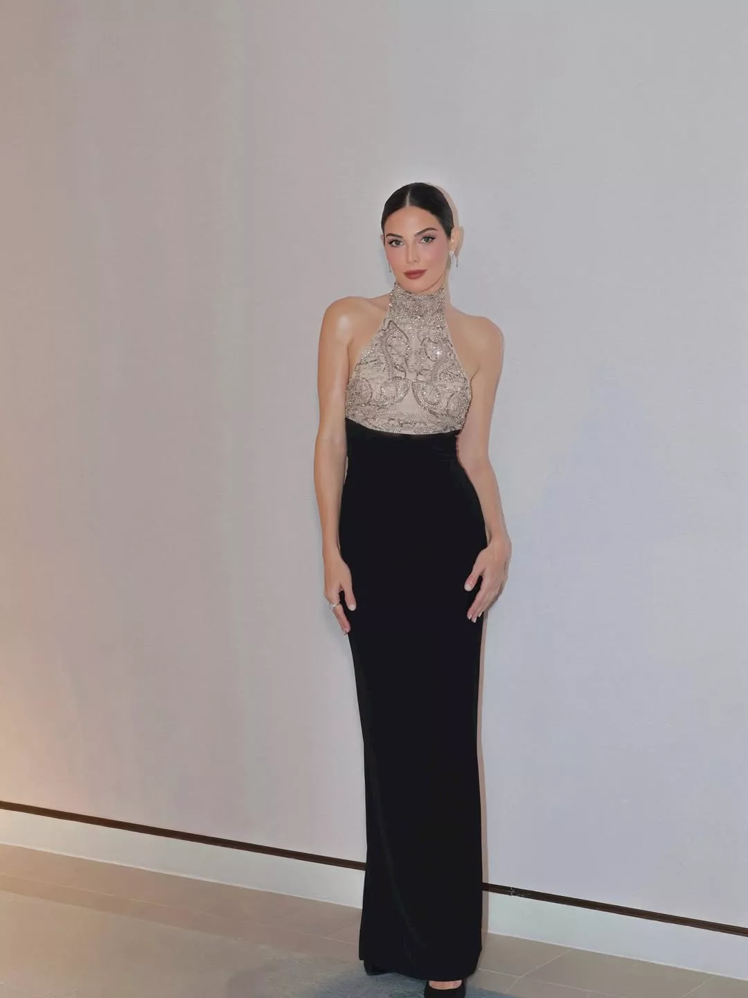 وظهرت رزان عبر حسابها علي انستجرام بإطلالة ناعمة وأنيقة وارتدت فستانًا طويلًا يجمع بين اللونين الأسود والبيج، مزخرفا عند الصدر، بقصة ضيقة تُبرز القوام، ونسقت معه تسريحة شعر مرفوعة ومكياج هادئ.