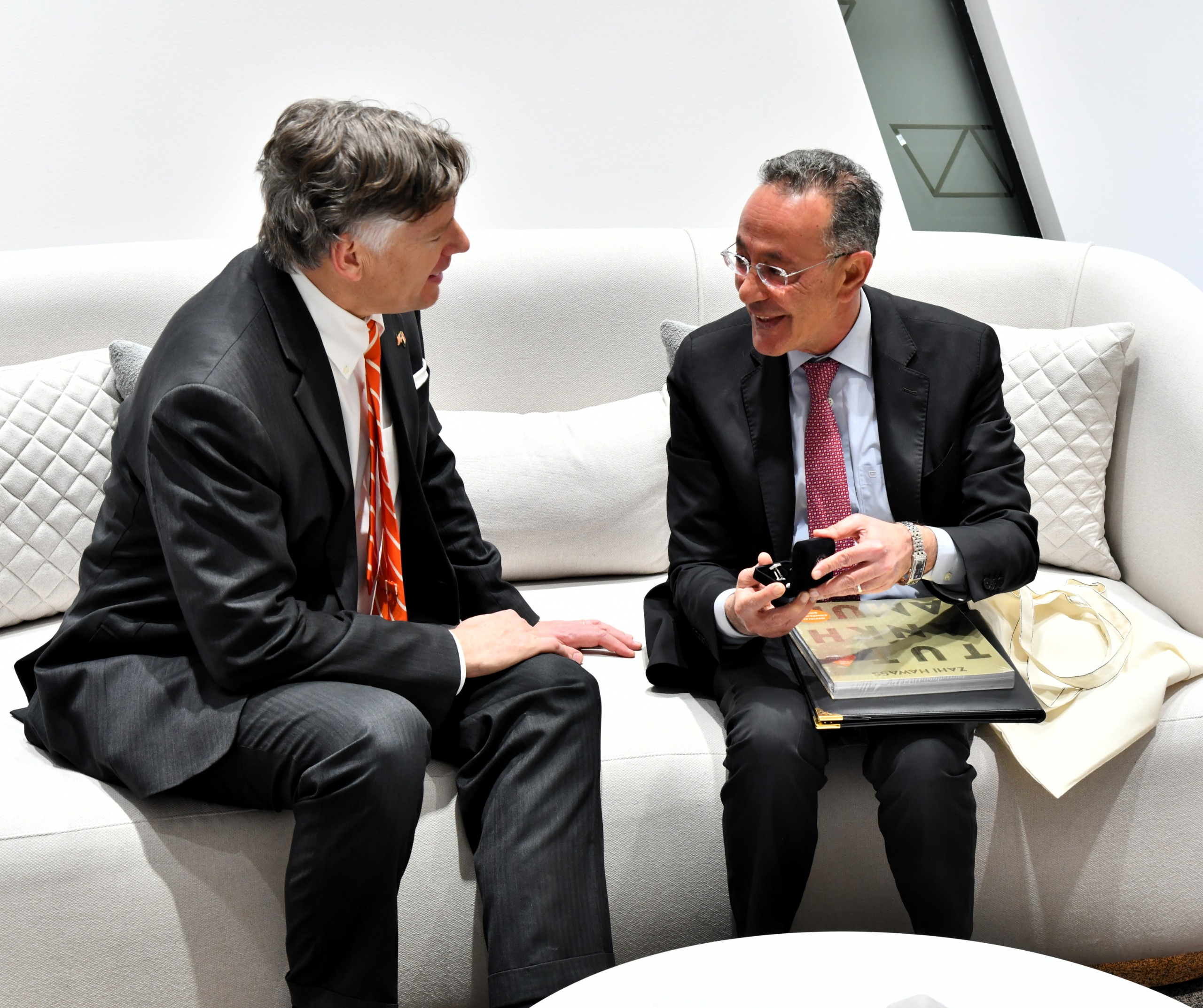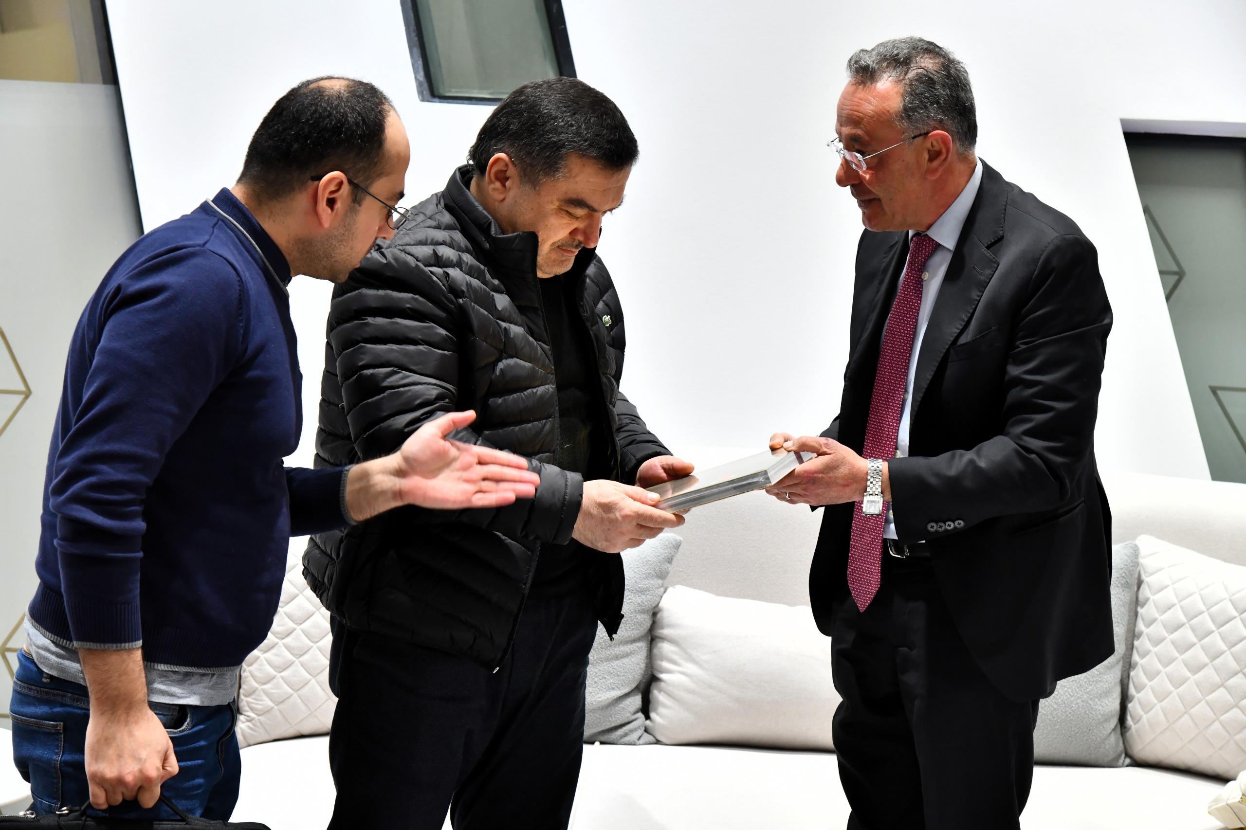 وقد كان في استقبالهم الدكتور أحمد غنيم الرئيس التنفيذي لهيئة المتحف المصري الكبير الذي رحب بهم وتحدث نعم عن رؤية المتحف ورسالته وأهم كنوزه، كما قدم لهم الهدايا التذكارية من المتحف.