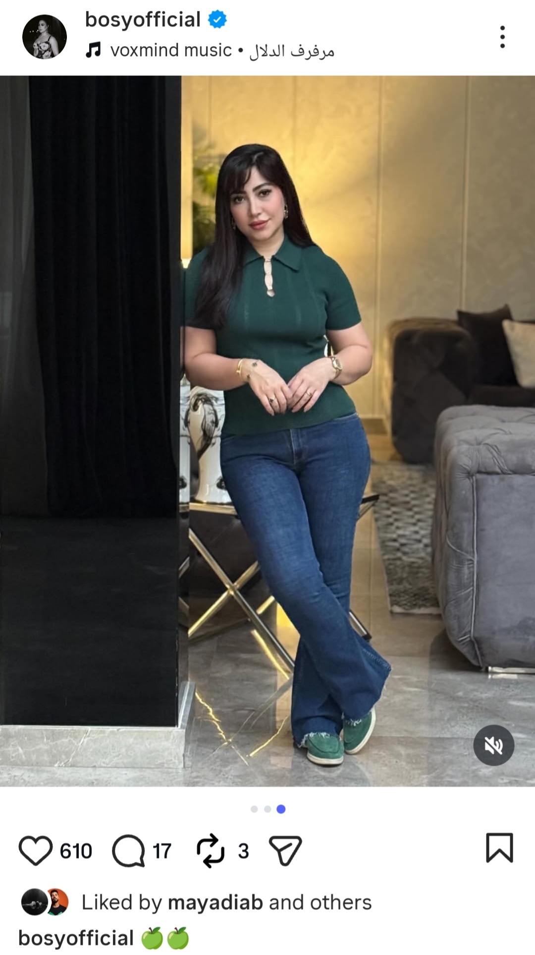 و ظهرت بوسي بإطلالة جذابة لافته بالكاجوال مرتدية تيشيرت باللون الاخضر نسقت معه بنطلون جينز ،ليكشف عن أناقتها ورشاقتها.