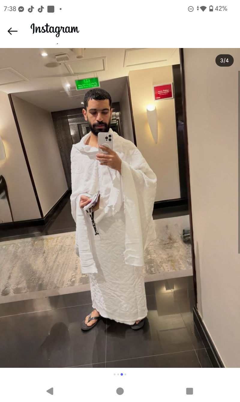 وظهر شقيق صلاح في الصورة عبر موقع التواصل الاجتماعي "إنستجرام" بملابس الإحرام وسط روحانيات مقدسة، رفقة عدد من أصدقائه.