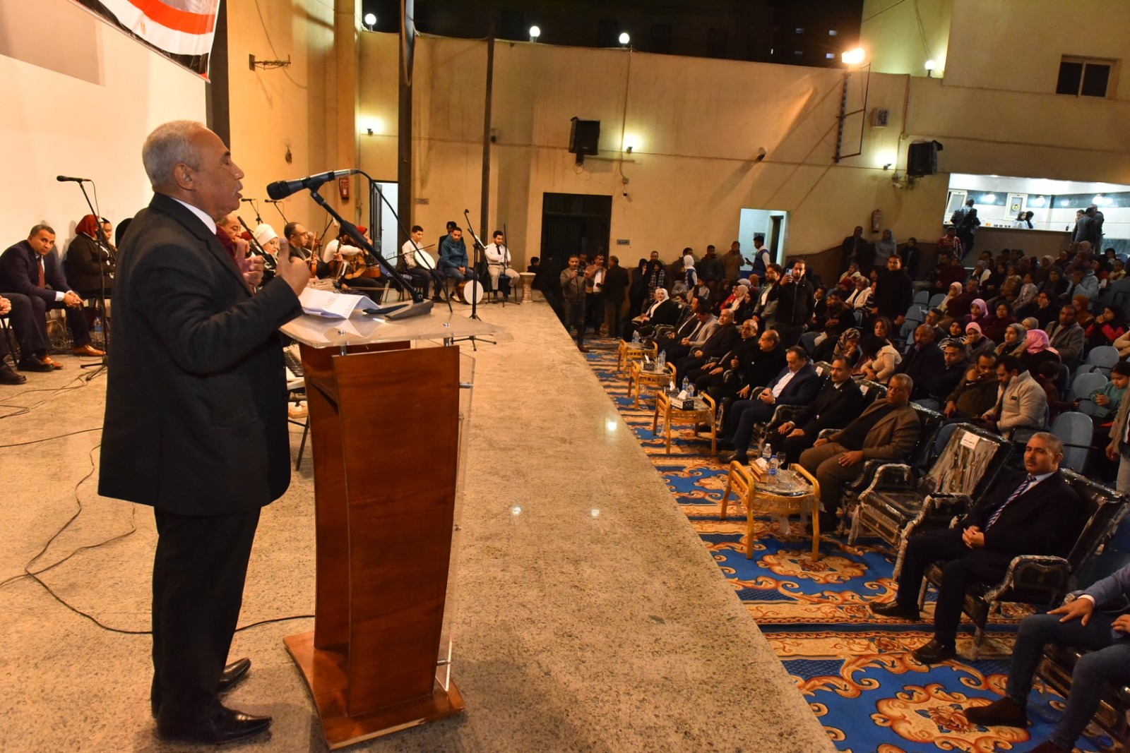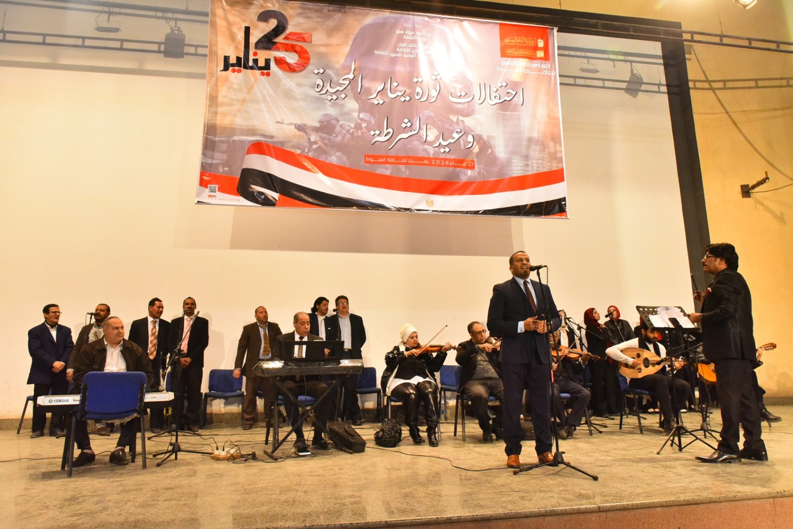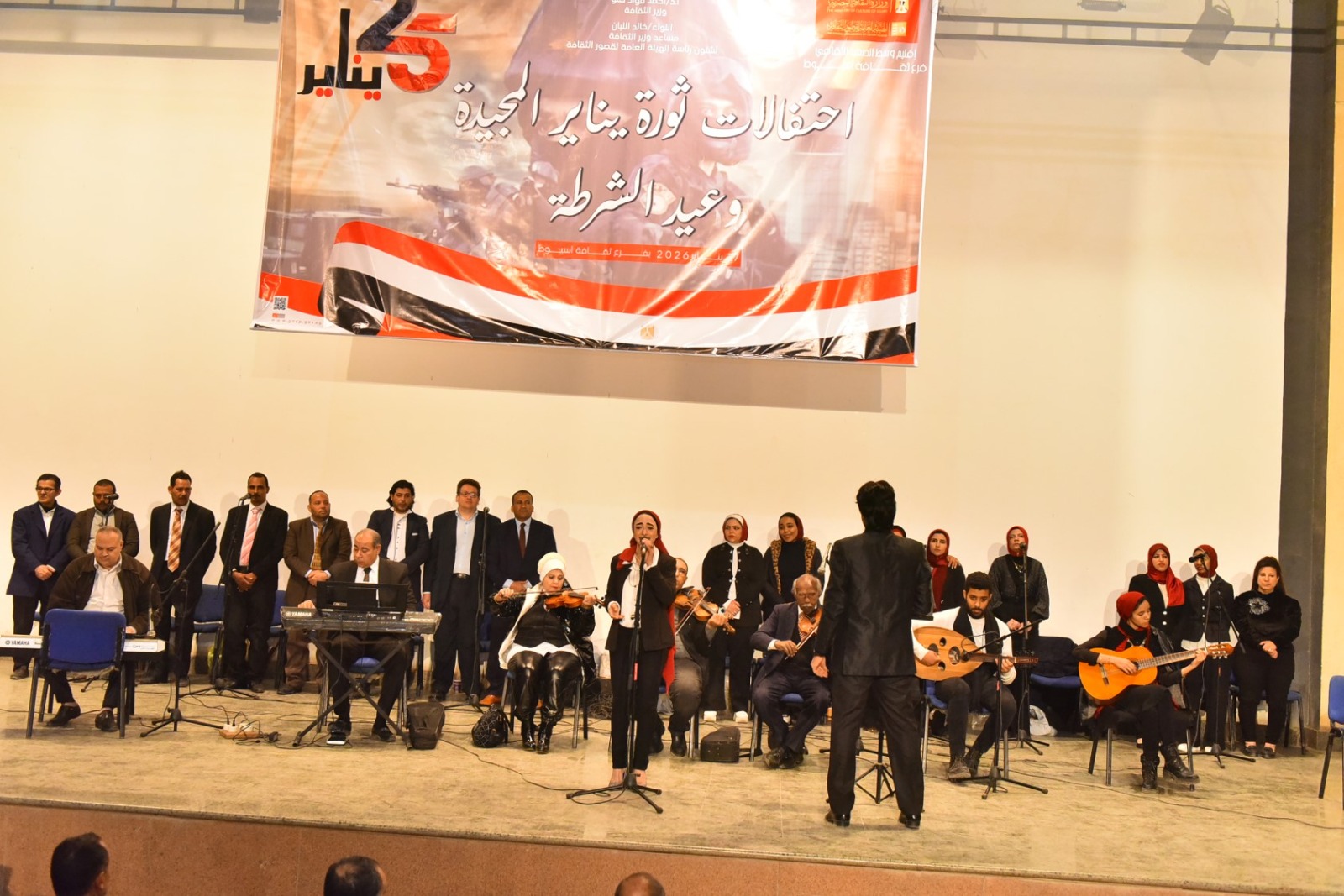 شهد اللواء دكتور هشام أبو النصر، محافظ أسيوط، الاحتفالية الفنية الكبرى التي نظمها فرع ثقافة أسيوط بمناسبة الذكرى المجيدة لثورة 25 يناير وعيد الشرطة الـ74، وذلك ضمن خطة الإدارة المركزية لإقليم وسط الصعيد الثقافي، تحت رعاية الدكتور أحمد فؤاد هنو وزير الثقافة، واللواء خالد اللبان مساعد وزير الثقافة لشئون رئاسة الهيئة العامة لقصور الثقافة.