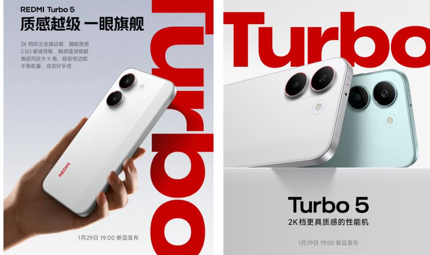 تشير الصور الرسمية إلى أن هاتف Redmi Turbo 5 سيتوفر باللونين الأبيض والأخضر النعناعي. في الصين، من المتوقع أن يبلغ سعر الجهاز حوالي 2000 يوان (حوالي 290 دولارًا أمريكيًا)، مما يضعه في فئة الهواتف المتوسطة العليا
