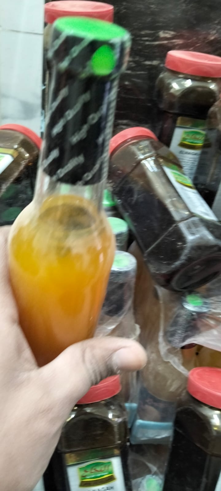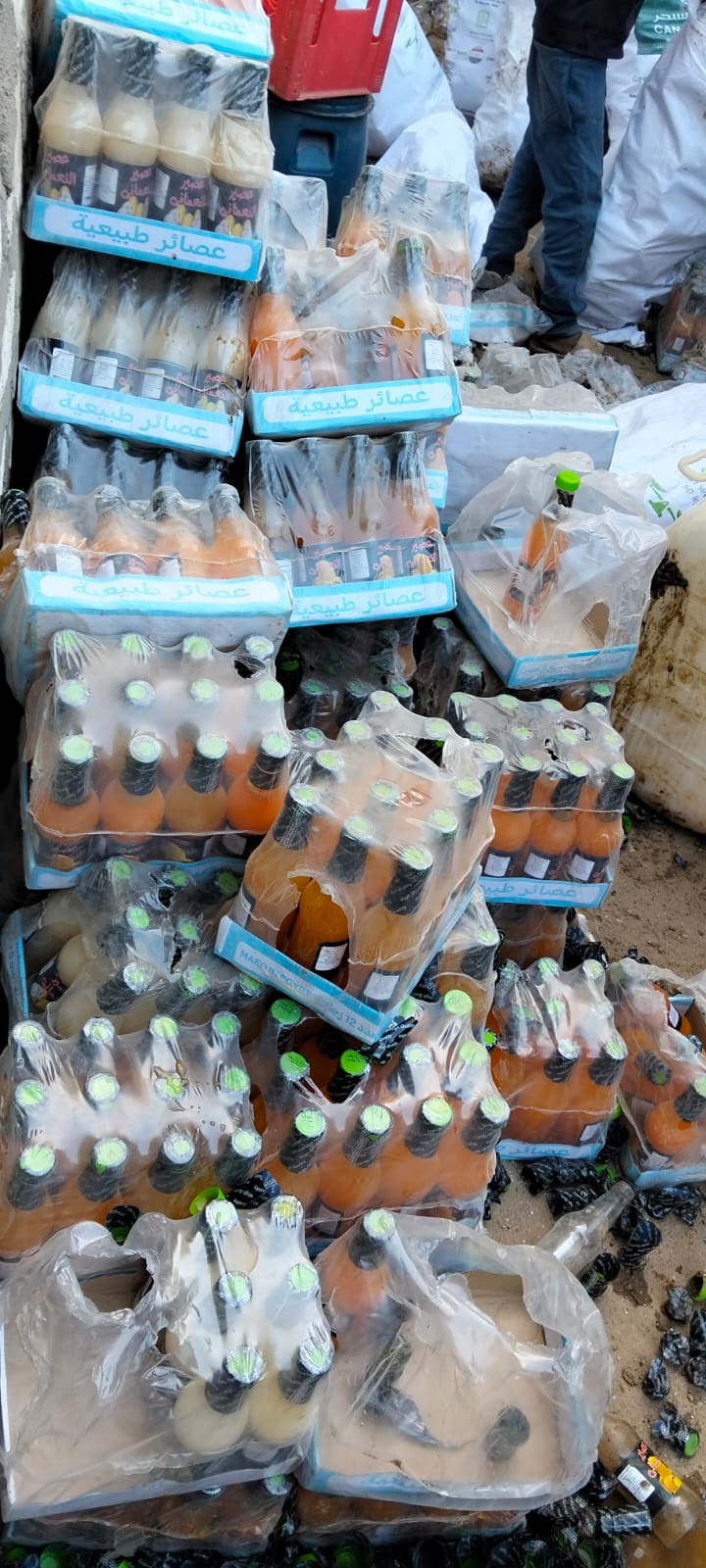 وأسفرت الحملة التموينية المسائية عن ضبط 7100 زجاجة عصير تظهر عليها علامات التلف ووجود فطريات بداخلها، و480 زجاجة عصير غير مدون عليها أي بيانات خاصة بالشركة المنتجة، إلى جانب 30 عبوة عسل منتهية الصلاحية، و38 عبوة عسل لا تحمل تاريخ إنتاج أو صلاحية، و5 زجاجات مكسبات طعم ورائحة صناعية.