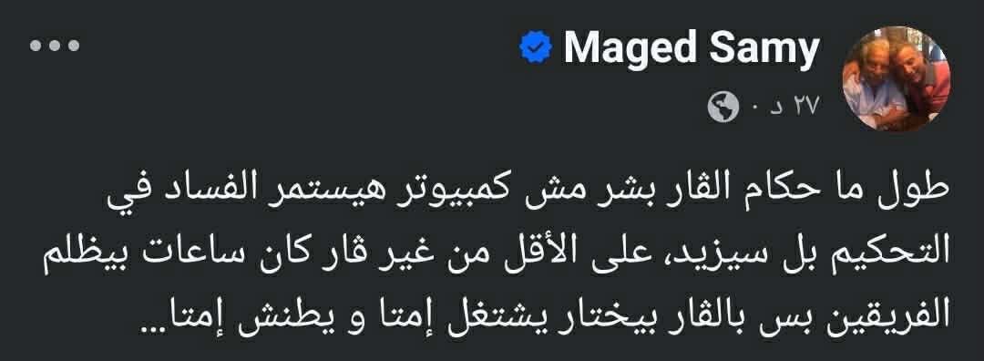 وكان ماجد سامى مالك نادي وادي دجلة قد شن هجوما على حكم تقنية الفيديو في مباراة الأهلي ووادي دجلة.