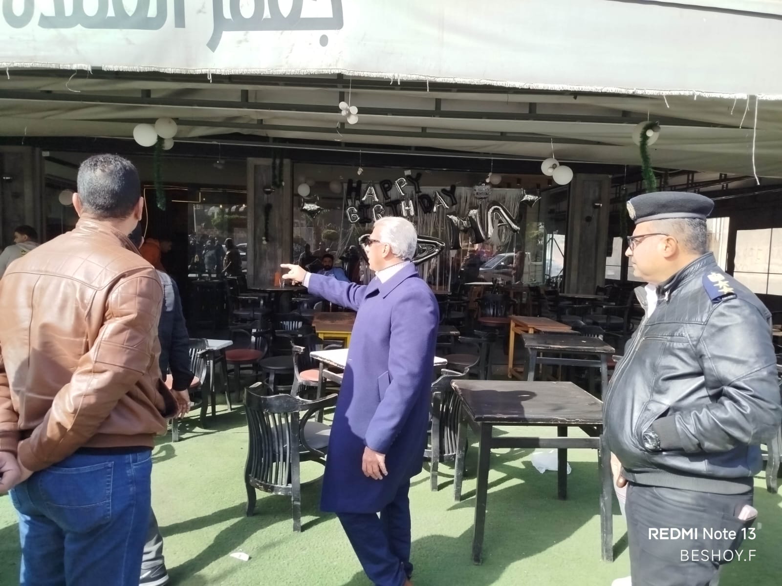 وتم التبيه في نطاق الحي بضرورة الالتزام بحدود الترخيص وعدم غلق الطرقات، واتخاذ الاجراءات القانونية لعدم عودة المخالفة مره اخرى ،وتم التنبيه على الجميع بمراعاة حق المواطنين في شارع خالي من الاشغالات .