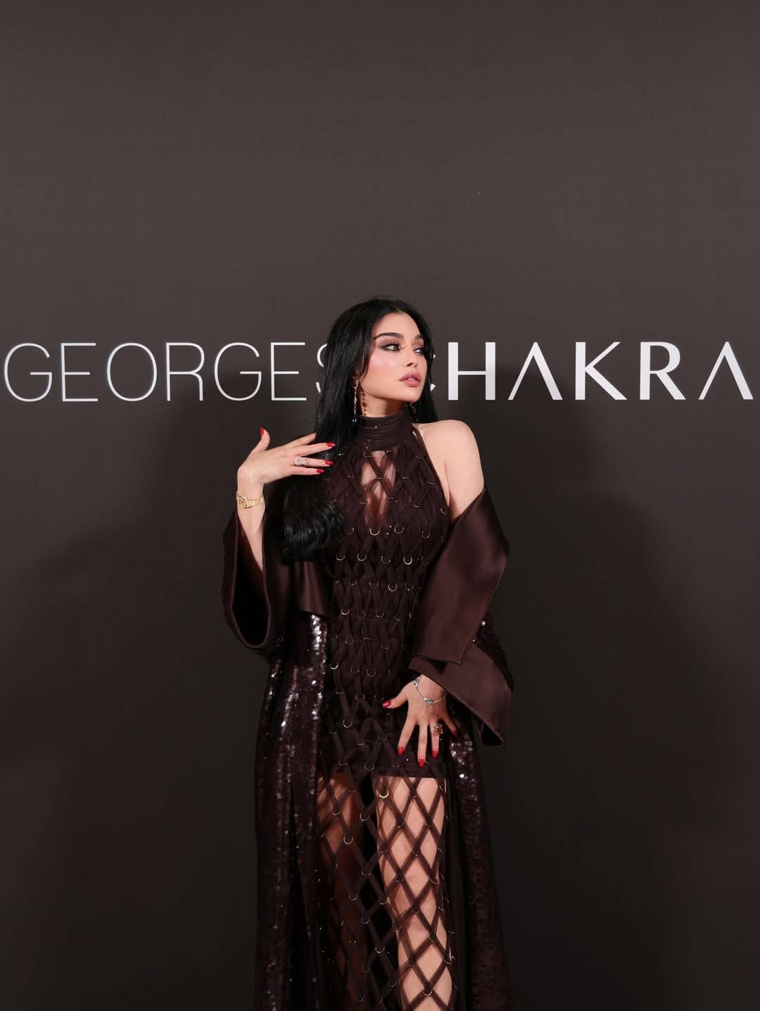 واثارت اللبنانية هيفاء وهبي الجدل بجمالها و قوامها الممشوق من خلال إطلالتها وظهورها بفستان من أحدث مجموعات أزياء دار جورج شقرا وهي ترتدي فستانا من تصميمه لمجموعته لخريف 2025، جاء باللون البني من خامة تشبه الشبك مبطنة لأعلى الركبة مع Cape طويل من خامة لامعة.