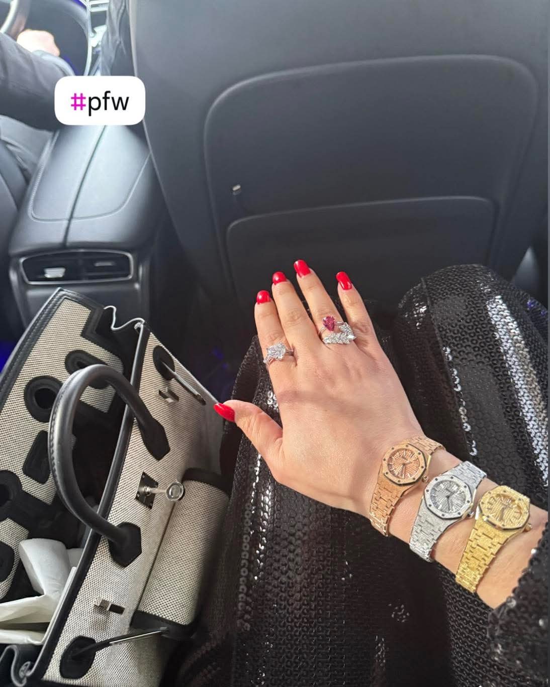 خلال مشاركتها في العرض، خطفت هيفاء الأنظار ليس فقط بإطلالتها الأنيقة المعتادة، بل بـ تقليعة جديدة أثارت تفاعلًا واسعًا على مواقع التواصل الاجتماعي، حيث ظهرت وهي ترتدي ثلاث ساعات يد في آن واحد — واحدة على كل معصم، وثالثة معصم آخر — في خطوة لم يشهدها جمهور الموضة من قبل داخل أسوار العروض الكبرى.