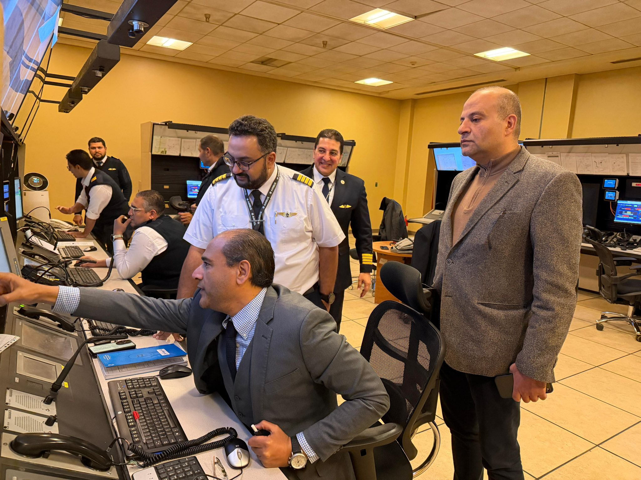 أيضا زيارة مركز الملاحة الجوية (Area Control) المسؤول عن إدارة الرحلات العابرة للمجال الجوي المصري بالكامل.