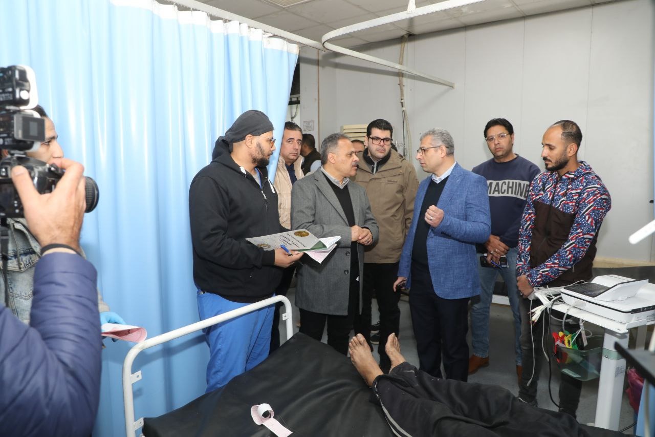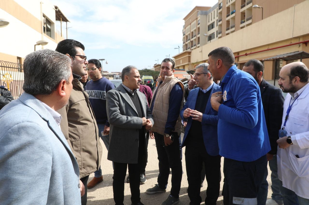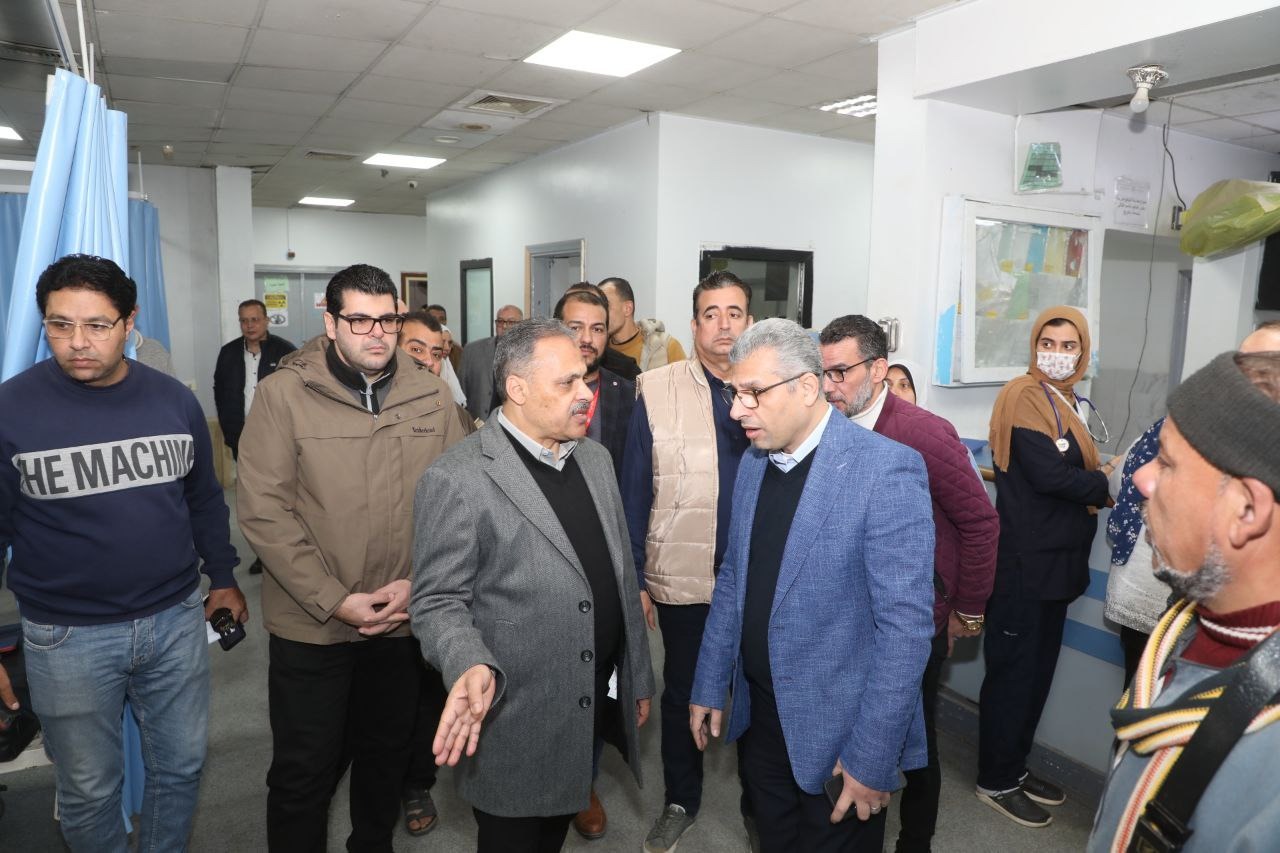 بدأ المحافظ زيارته بتفقد قسم الإستقبال والطوارئ، والذي يستقبل نحو (١٤٠٠ )حالة يومياً، ويضم( ٢٦) سريراً متنوع، منها (١٢) سريراً لحالات الحوادث، الي جانب معمل طوارئ وأجهزة أشعة "مقطعية، وعادية، وتليفزيونية" مخصصة لجميع حالات الإستقبال، فضلاً عن (٣) غرف عمليات، والمجهزة لإجراء العمليات الجراحية لحالات الحوادث، حيث تمت الإشارة من أطباء الاستقبال أنه تم إستقبال (٧٠) حالة منذ الصباح الباكر حتي الآن، مشدداً على الأطباء المتواجدين بتقديم كافة الإسعافات الأولية والعلاجية لهم حتى تمام امتثال الشفاء.