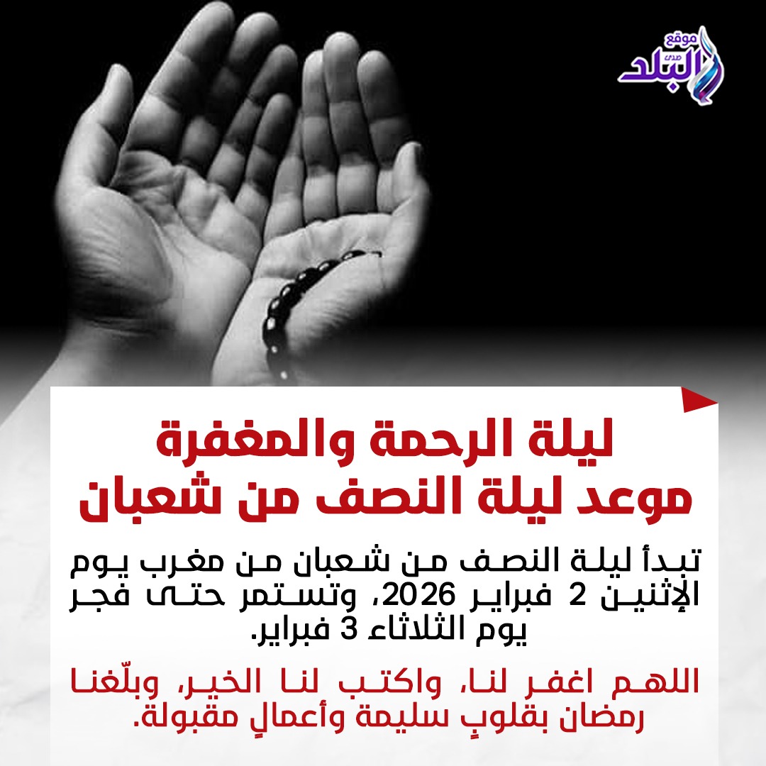 متى موعد ليلة النصف من شعبان 2026 ؟ يستحب الإكثار من الأعمال الصالحة في ليلة النصف من شعبان 1447 هجرية، والتي يوافق موعد ليلة النصف من شعبان 2026 ميلادية مغرب يوم الإثنين 14 شعبان 1447 الموافق 2 فبراير 2026م، وتنتهي فجر الثلاثاء 15 شعبان 3 فبراير، ووردت أحاديث نبوية صحيحة تؤكد فضل ليلة النصف من شعبان، وأن شهر شعبان ترفع فيه الأعمال إلى الله تعالى، وذكر العلماء عدة أسماء ليلة النصف من شعبان، ومنها أنها سميت ليلة النصف من شعبان بـ«ليلة البراءة» أو «الغفران» أو «القدر» ولا مانع منها شرعًا، من هذه التسمية، فالمعنى المراد من ذلك أن ليلة النصف من شعبان ليلة يقدر فيها الخير والرزق ويغفر فيها الذنب، وهو معنى صحيح شرعًا.