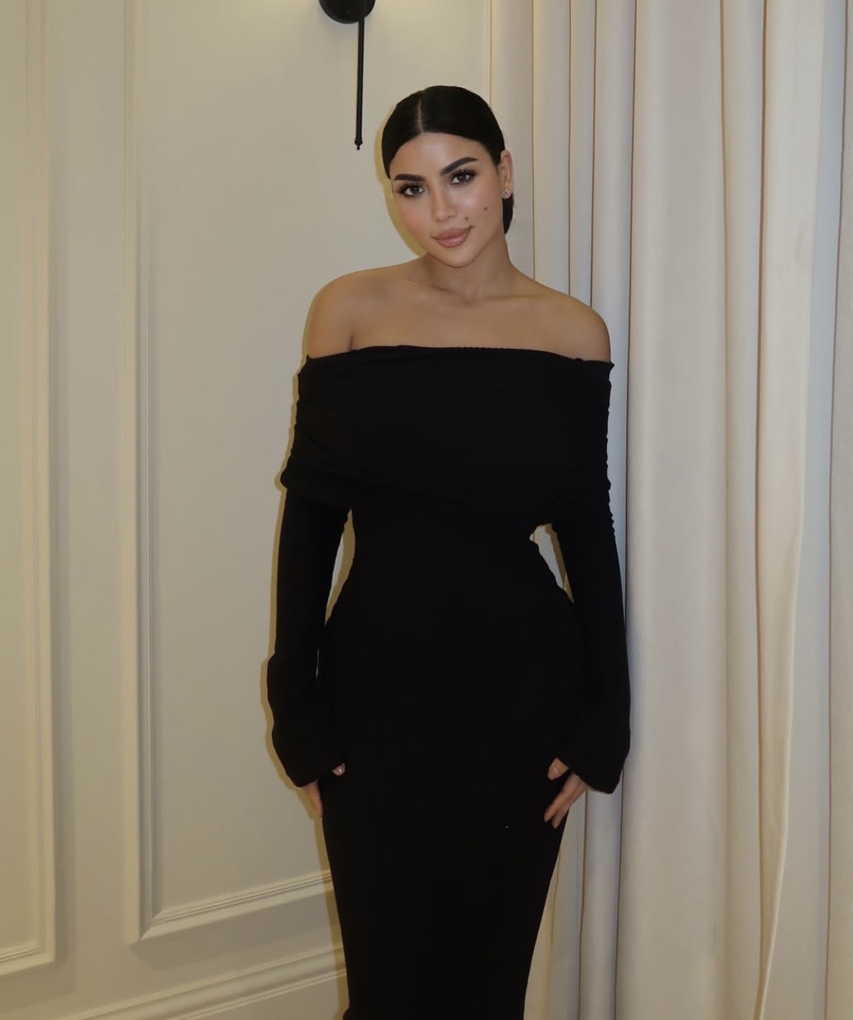 خطفت الفنانة كارولين عزمي الأنظار بإطلالة أنيقة وناعمة، حيث ظهرت بفستان أسود طويل بتصميم أوف شولدر أبرز رشاقتها ومنحها لمسة راقية.