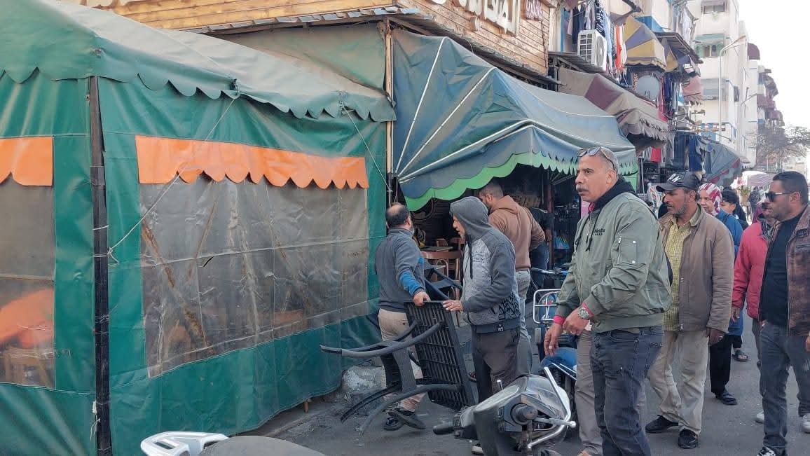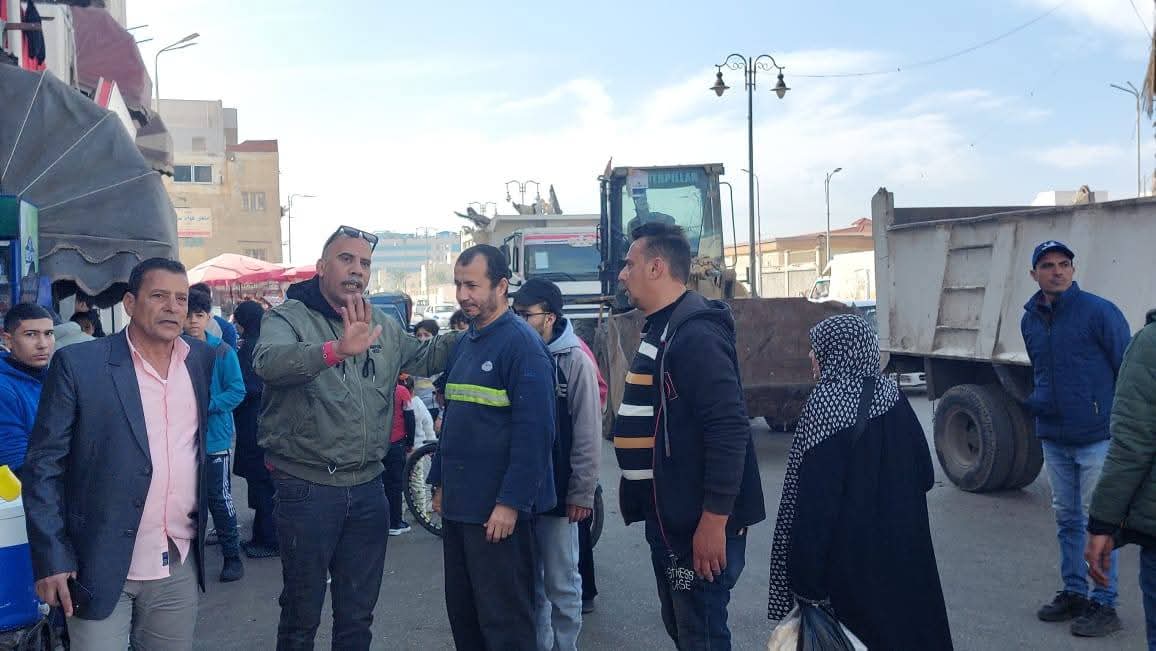 تم رفع وازالة كافة الأشغالات والتعديات وتم التنبيه على اصحاب المحلات بالالتزام بالمساحات المقررة وعدم الخروج عن خط التنظيم ومن يخالف التعليمات سيتم تطبيق القانون عليه بكل حزم