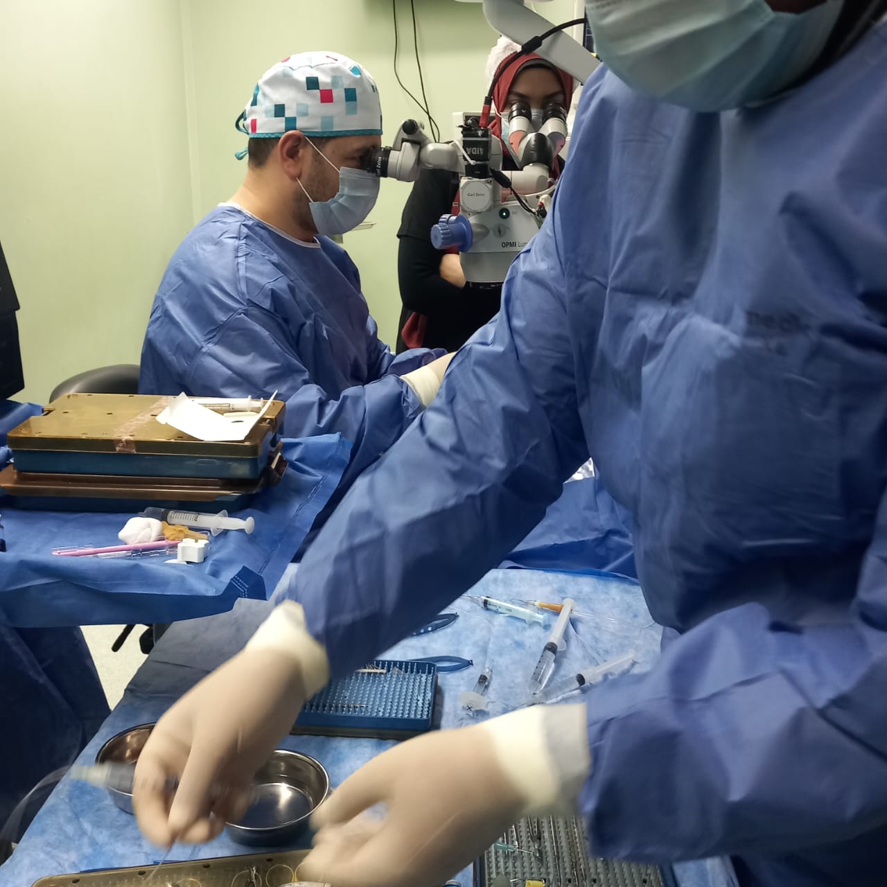 كما أجريت عملية لحالة مريض مسن فقد عينه اليسرى ويعاني من عتامة بالعين اليمنى مع وجود مياه بيضاء، وتم زرع قرنية مع إزالة المياه البيضاء وزرع عدسة، وحالة تعاني من مياه بيضاء وعتامة بالقرنية وتم زرع قرنية وإزالة المياه البيضاء وزرع عدسة.