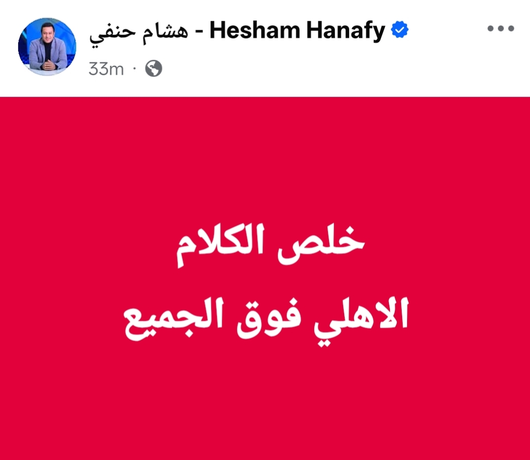 وكتب هشام حنفي عبر حسابه الشخصي بموقع التواصل الاجتماعي فيسبوك: خلص الكلام الاهلي فوق الجميع.