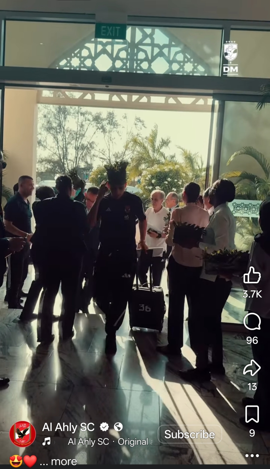 وصلت بعثة النادي الأهلي المصري إلى تنزانيا وسط أجواء حماسية واستقبال حافل من أمام الفندق  احتفالا باللاعبين استعداداً لمواجهة يانج أفريكانز في الجولة الرابعة من دوري أبطال إفريقيا .