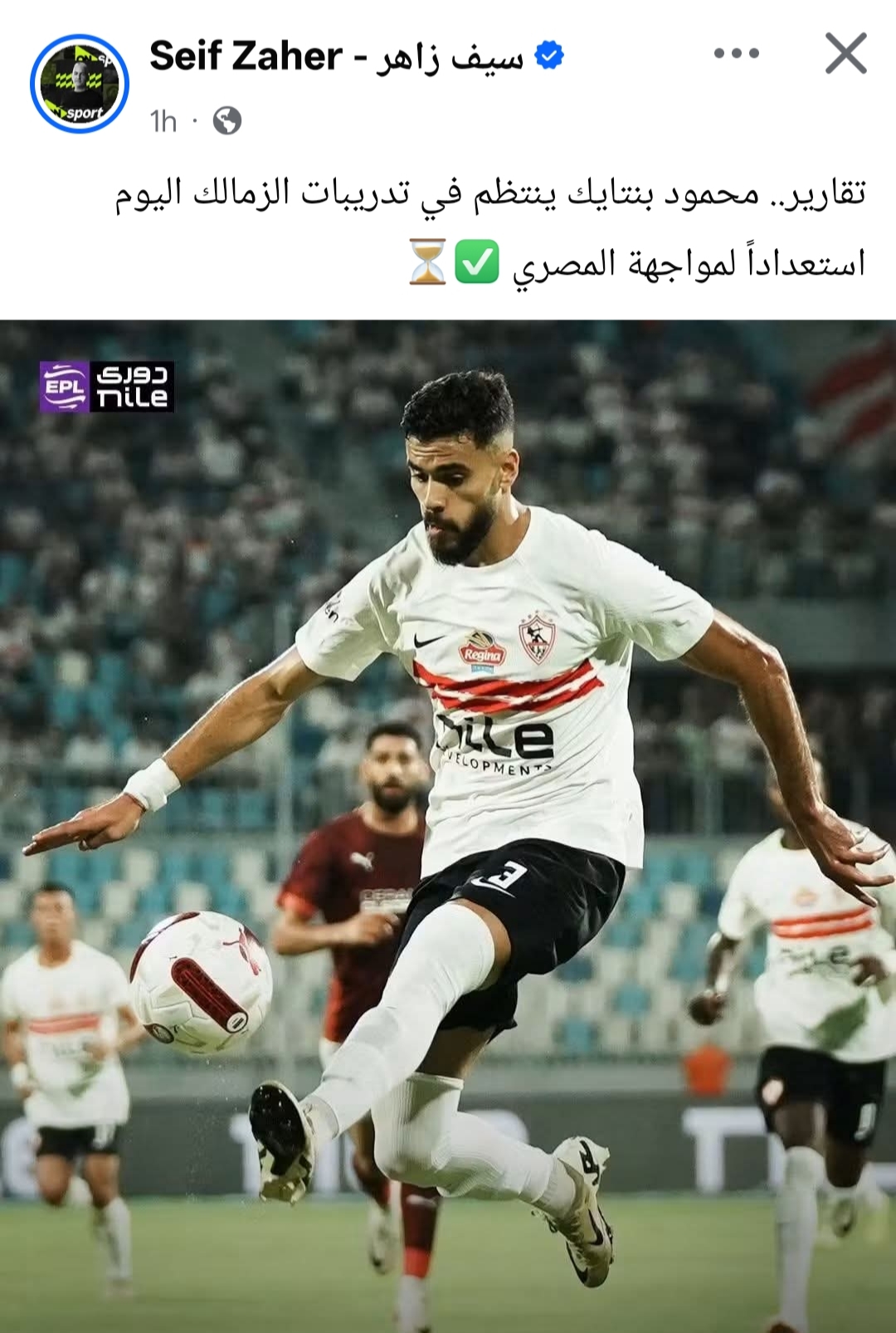 و كتب سيف زاهر :تقارير.. محمود بنتايك ينتظم في تدريبات الزمالك اليوم استعداداً لمواجهة المصري .