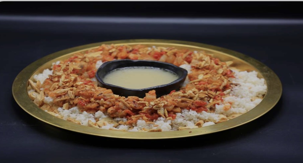 يزين الوجه بلوز صنوبري محمص و سماق ثم يقدم.