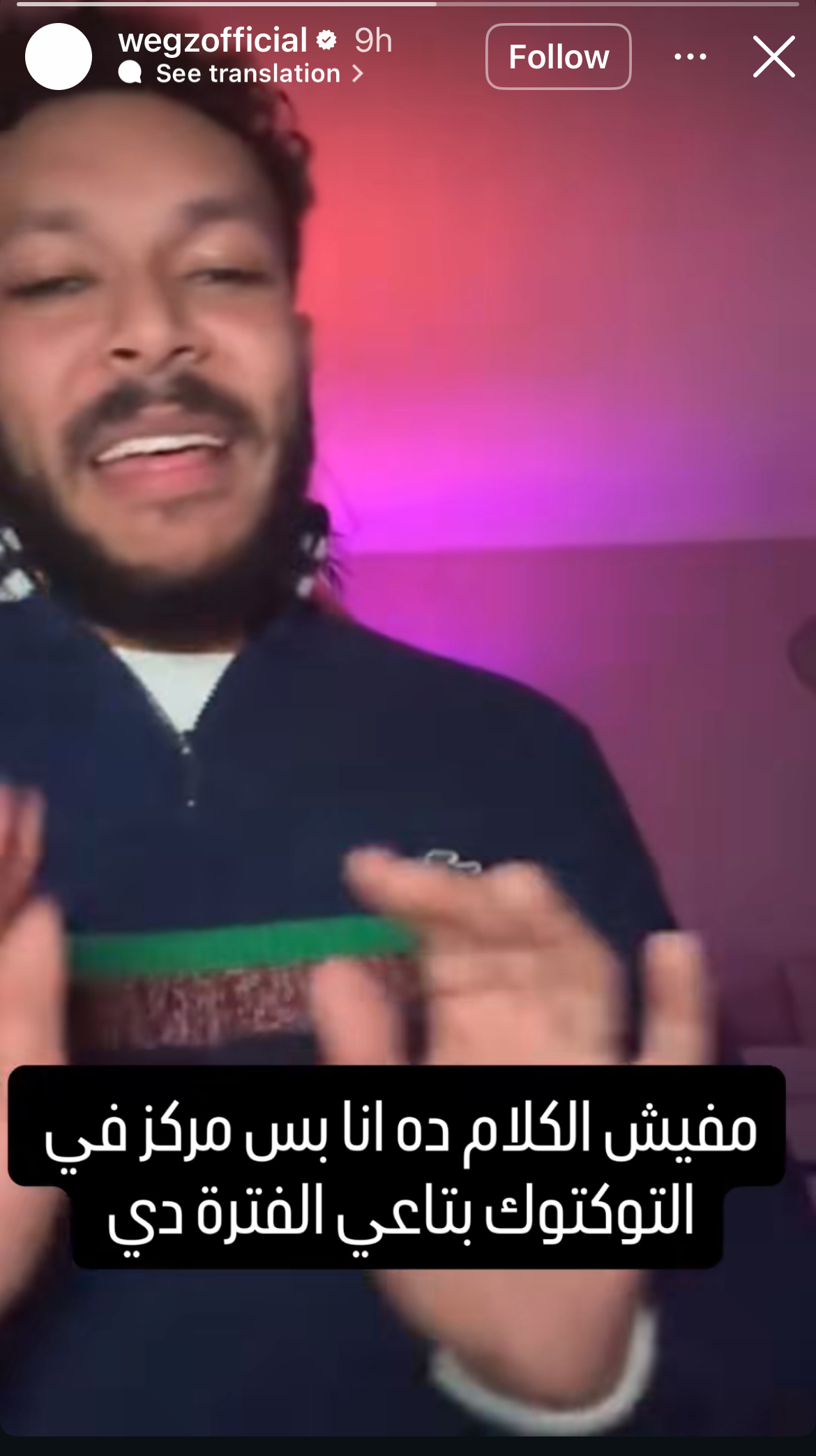وعلق ويجز قائلًا: مفيش الكلام ده، أنا بس مركز في التيك توك بتاعي الفترة دي.