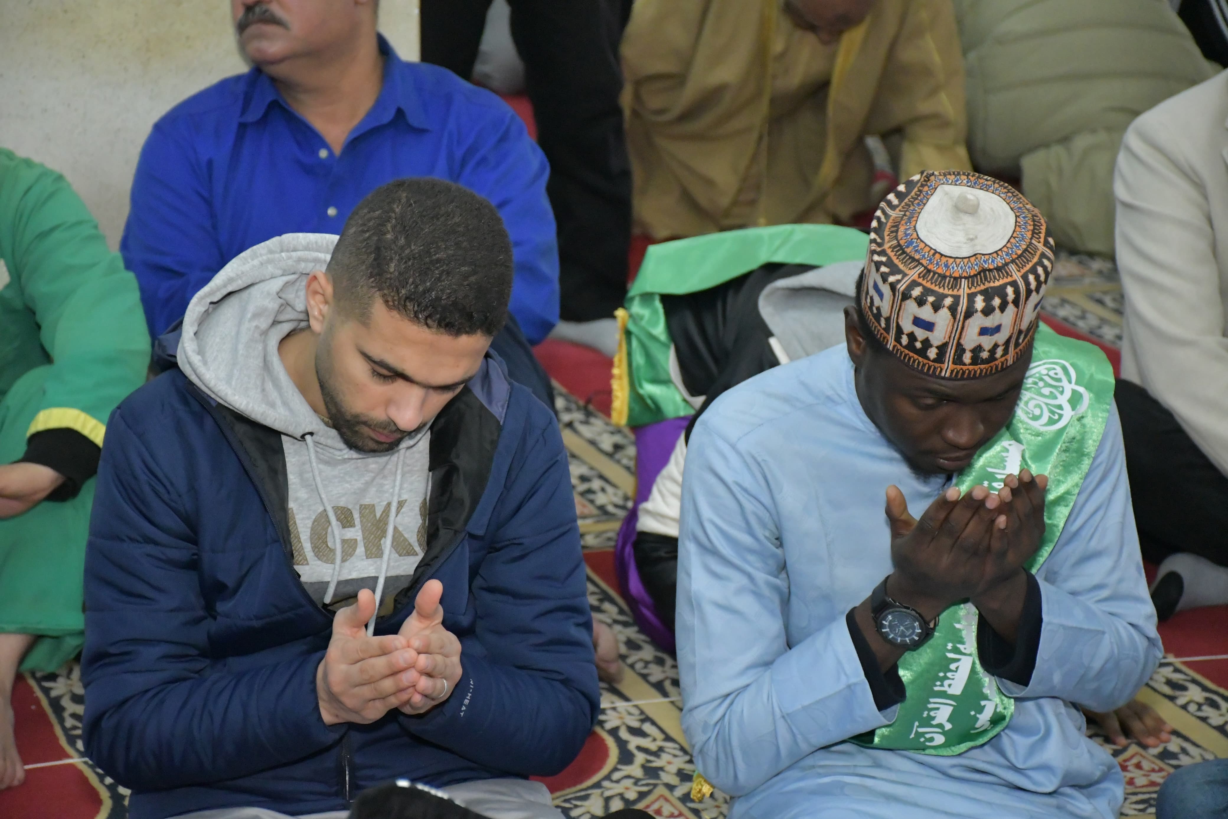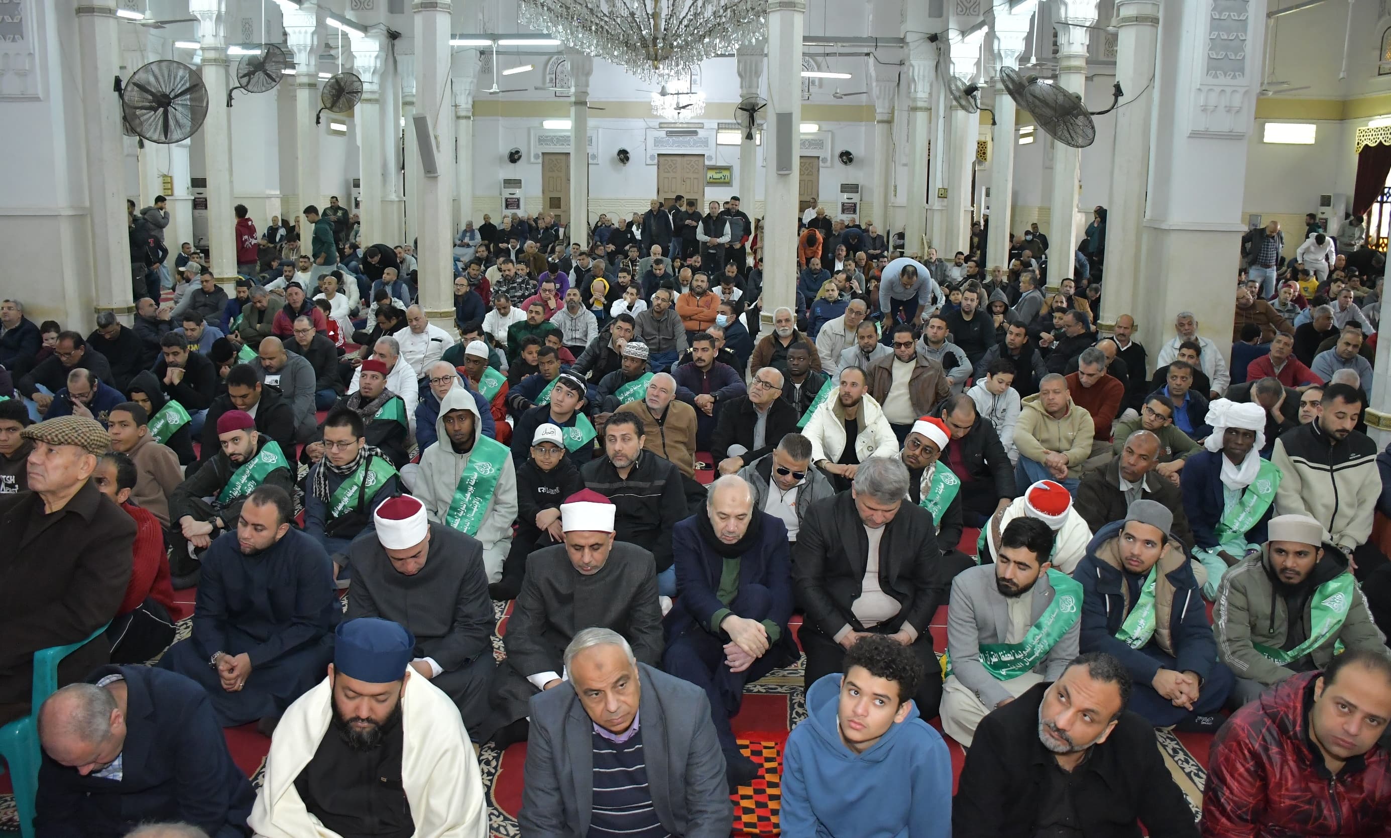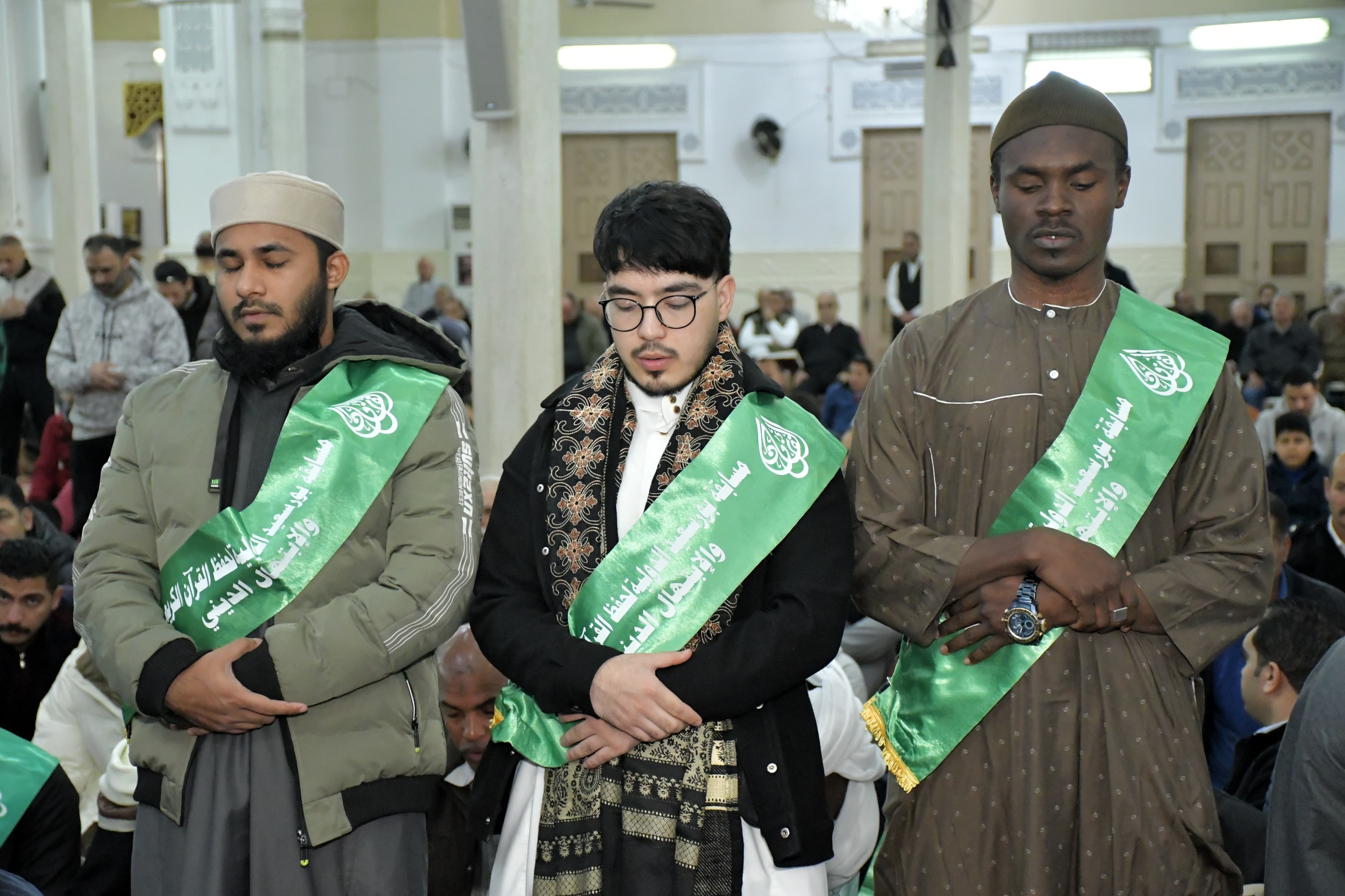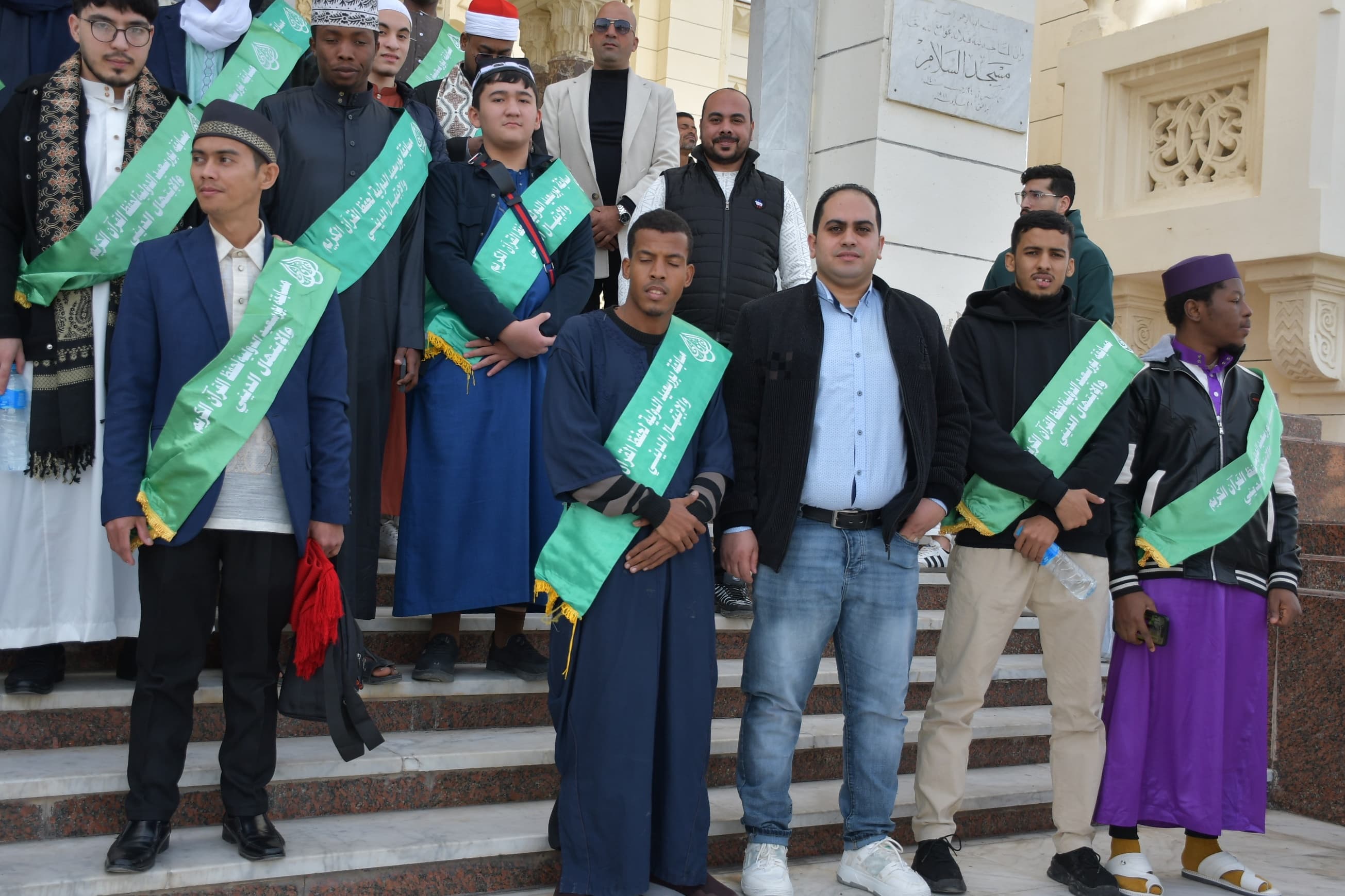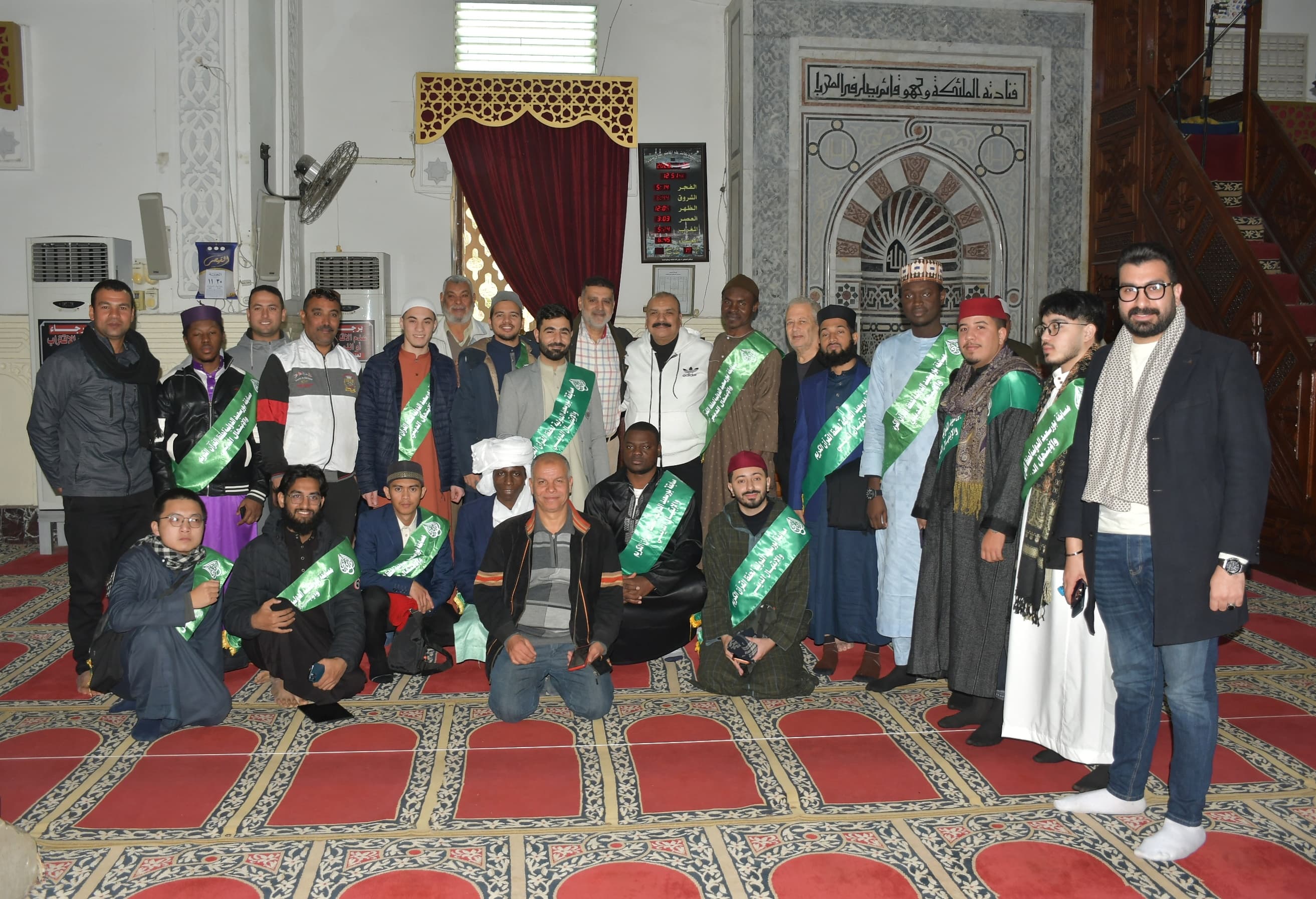 ممثلون لـ 30 دولة.. متسابقو بورسعيد الدولية يؤدون صلاة الجمعة بمسجد السلام وينشدون بساحة المسجد