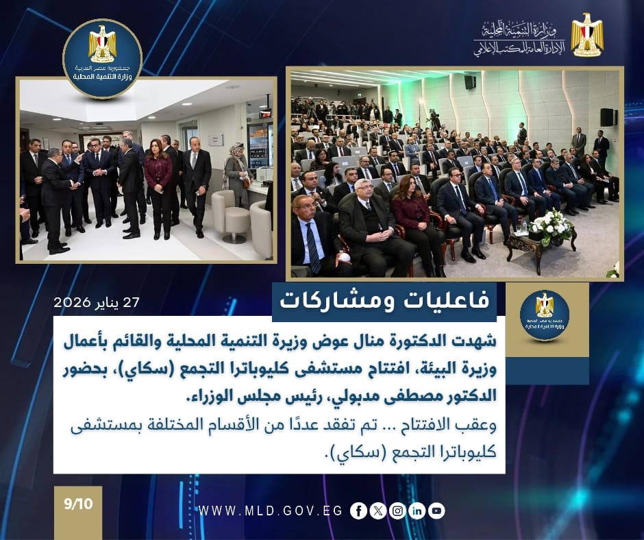 شهدت الدكتورة منال عوض وزيرة التنمية المحلية والقائم بأعمال وزير البيئة، افتتاح مستشفى كليوباترا التجمع (سكاي)، بحضور الدكتور مصطفى مدبولي، رئيس مجلس الوزراء، التي تعد أحدث المنشآت الطبية التابعة لمجموعة مستشفيات كليوباترا بشرق القاهرة، وذلك في إطار دعم الدولة لتطوير منظومة الرعاية الصحية، وتعزيز الشراكة بين القطاعين الحكومي والخاص، بما يتواءم مع رؤية مصر 2030 وعقب الافتتاح تم تفقد عددا من الأقسام المختلفة بمستشفى كليوباترا التجمع (سكاي).