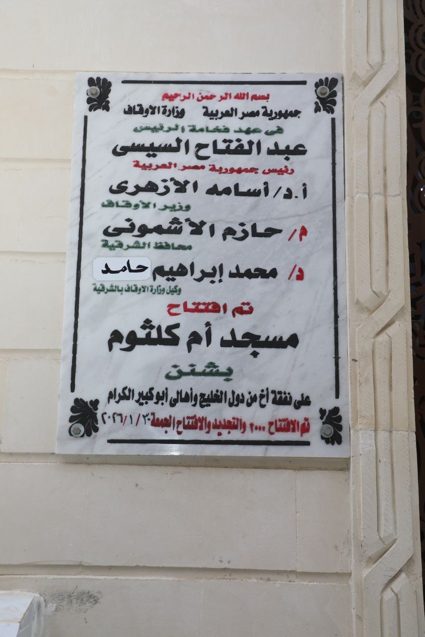 افتتح المهندس حازم الأشموني محافظ الشرقية مسجد "أم كلثوم" بقرية شنن بمركز أبو كبير، وذلك عقب أعمال الإحلال والتجديد والمٌقام بالجهود الذاتية بتكلفة إجمالية بلغت ٩ ملاييت جنيه والمكون من طابقين، يضم الطابق الأول مٌصلي للرجال علي مساحة ٢٧٠ متراً، ويضم الطابق الثاني صحن المسجد علي مساحة ٢٧٠ مترا ومٌصلي للسيدات علي مساحة ٧٥ متراً، وذلك لاستقبال المصلين من أبناء القرية لأداء الشعائر الدينية في أجواء روحانية مناسبة، وذلك بحضور الدكتور أحمد عبد المعطي نائب المحافظ والدكتور محمد إبراهيم حامد وكيل وزارة الأوقاف والسيد عبد الرازق رئيس مركز ومدينة أبو كبير وأيمن هيكل رئيس مركز ومدينة ههيا وعدد من أعضاء مجلسي النواب والشيوخ ورجال الدين الاسلامي.