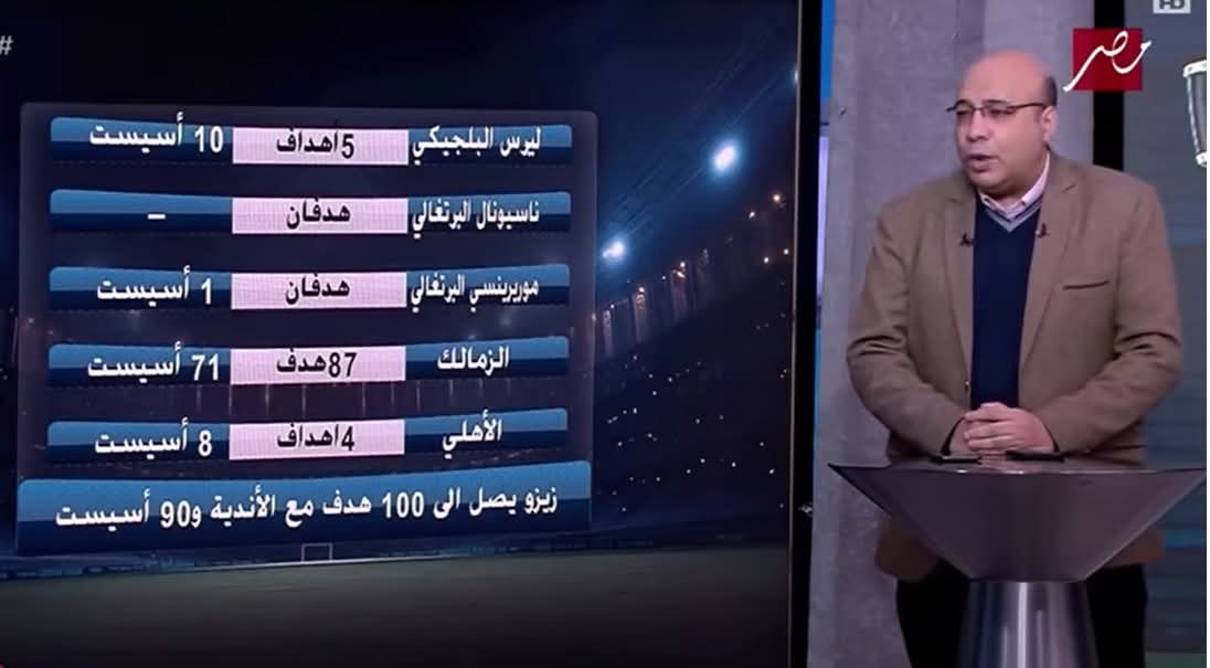وكتب خالد طلعت عبر صفحته على موقع التواصل الاجتماعي فيسبوك:"زيزو يصل الى 100 هدف مع الأندية و90 أسيست باجمالي 190 مساهمة".