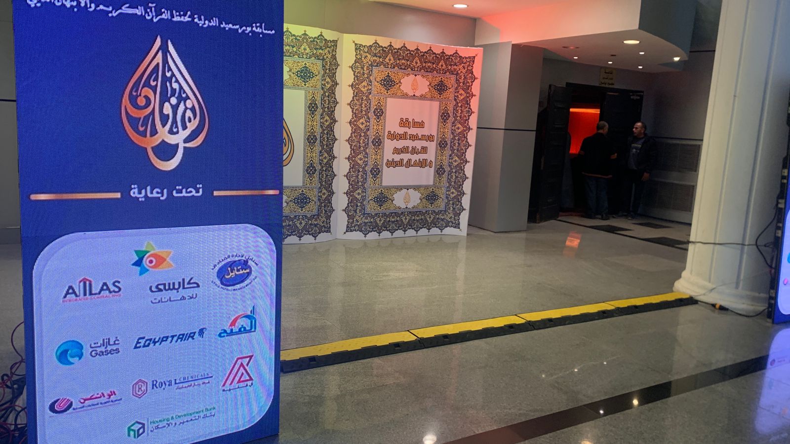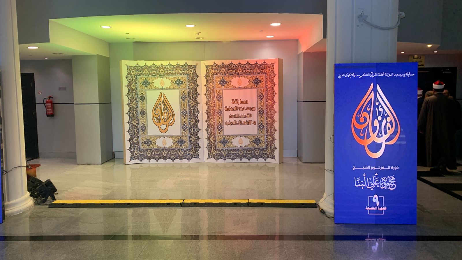 وضمت الاستعدادات إقامة مجسم كبير للمصحف الشريف في مدخل القاعة، إلى جانب شاشات إلكترونية تعرض اسم المسابقة وترحب بالوفود المشاركة من مختلف دول العالم، كما جرى تجهيز مسرح يليق بقيمة القرآن الكريم ومكانة مصر، مزود بعدد من الشاشات العملاقة التي يُعرض من خلالها كواليس وتجهيزات حفل الافتتاح.