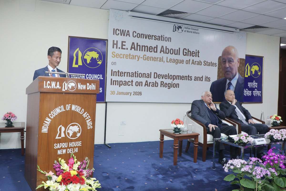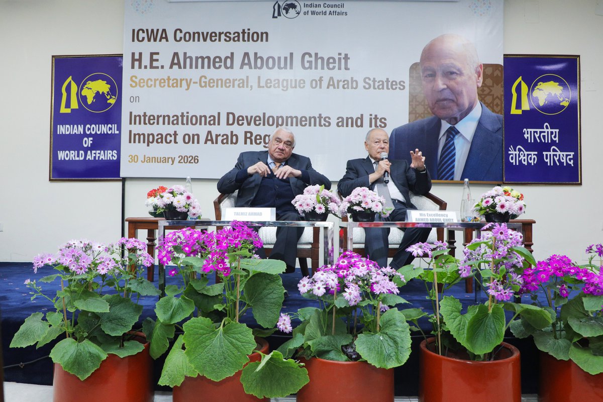 شارك أحمد أبو الغيط، الأمين العام لجامعة الدول العربية، في لقاء نظمّه المجلس الهندي للشؤون العالمية، يوم الجمعة 30 يناير 2026، تناول خلاله المشهد العالمي المتغير وتأثيره على المنطقة العربية، وذلك بحضور نخبة من الدبلوماسيين والصحفيين والخبراء الهنود، إلى جانب عدد من أعضاء السلك الدبلوماسي العربي في نيودلهي.