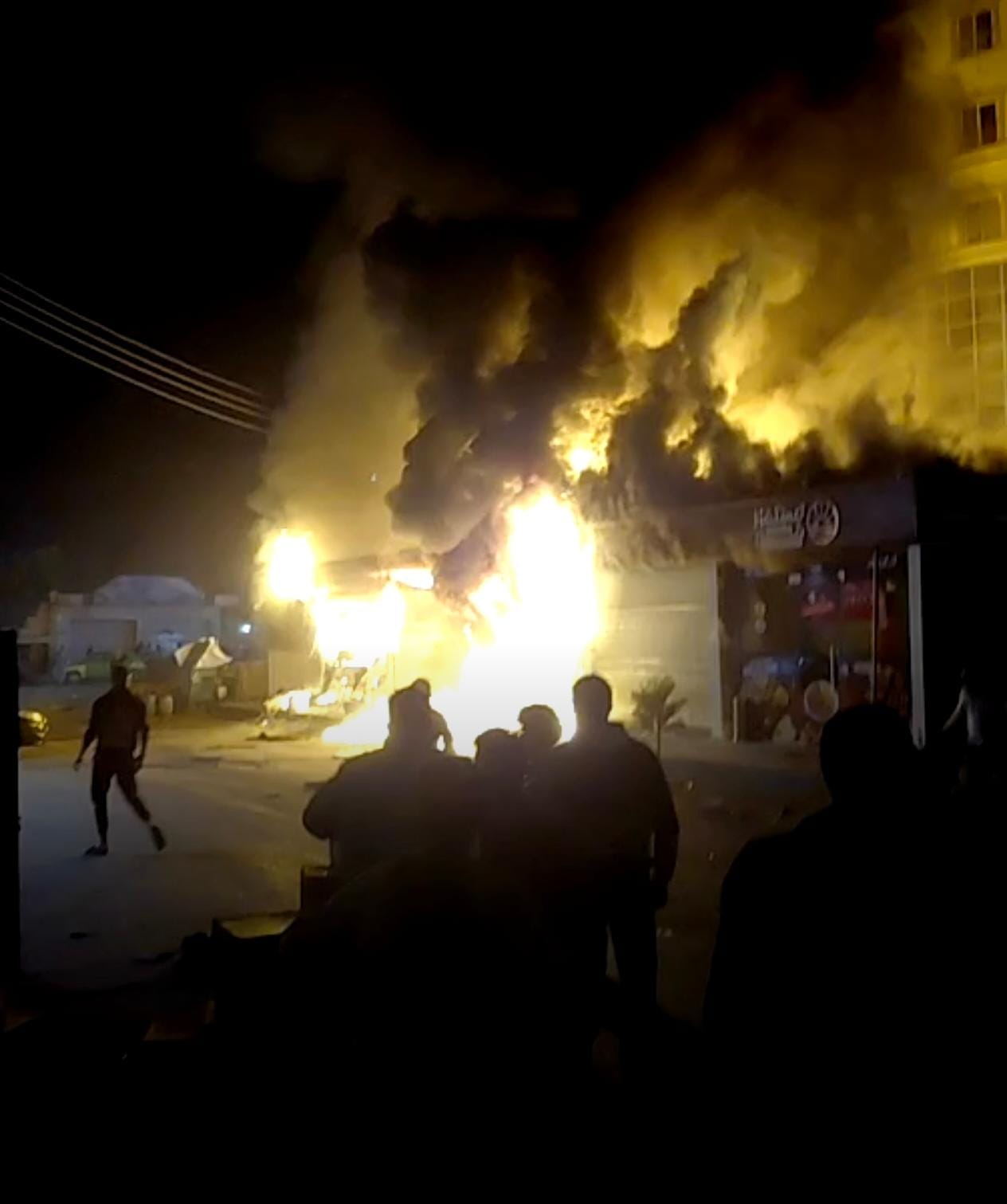 وتصاعدت ألسنة النيران بشكل كبير وسط حالة من الذعر بين المواطنين.