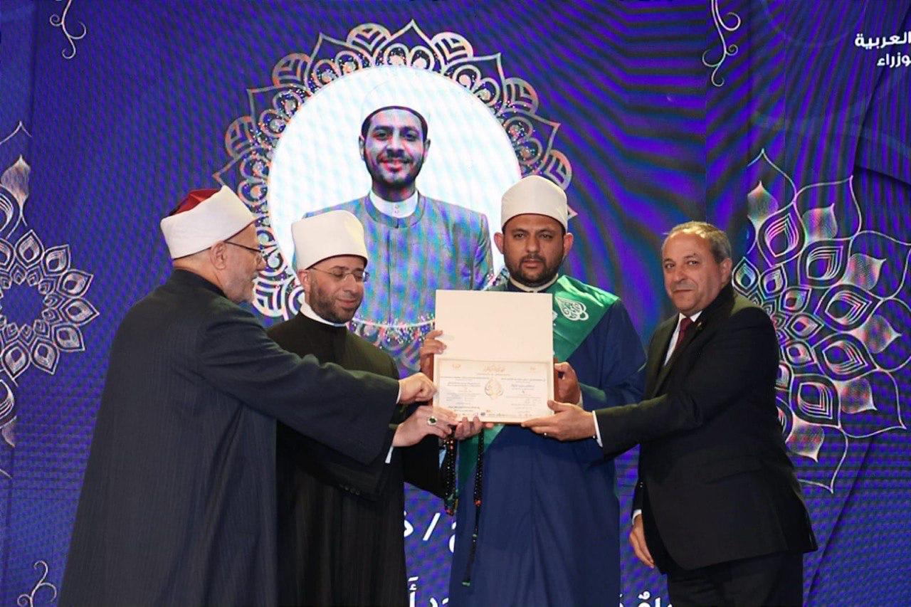 وتضمَّن الحفل كلمة لفضيلة الإمام الأكبر الأستاذ الدكتور أحمد الطيب، شيخ الأزهر الشريف، ألقتها نيابةً عنه الأستاذة الدكتورة نهلة الصعيدي، مستشار شيخ الأزهر لشئون الوافدين، نقلت خلالها تحياته وتقديره للقائمين على المسابقة، وتهنئته للفائزين، مع توجيه الشكر لمحافظة بورسعيد على حُسن التنظيم وكرم الاستضافة.