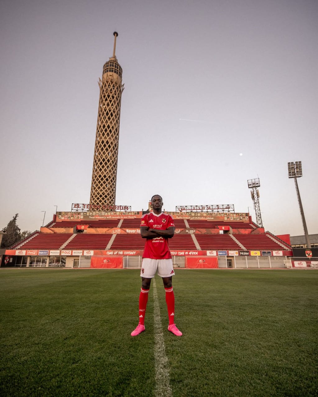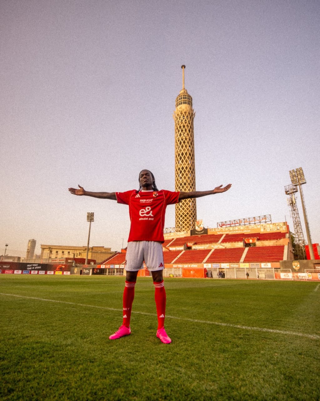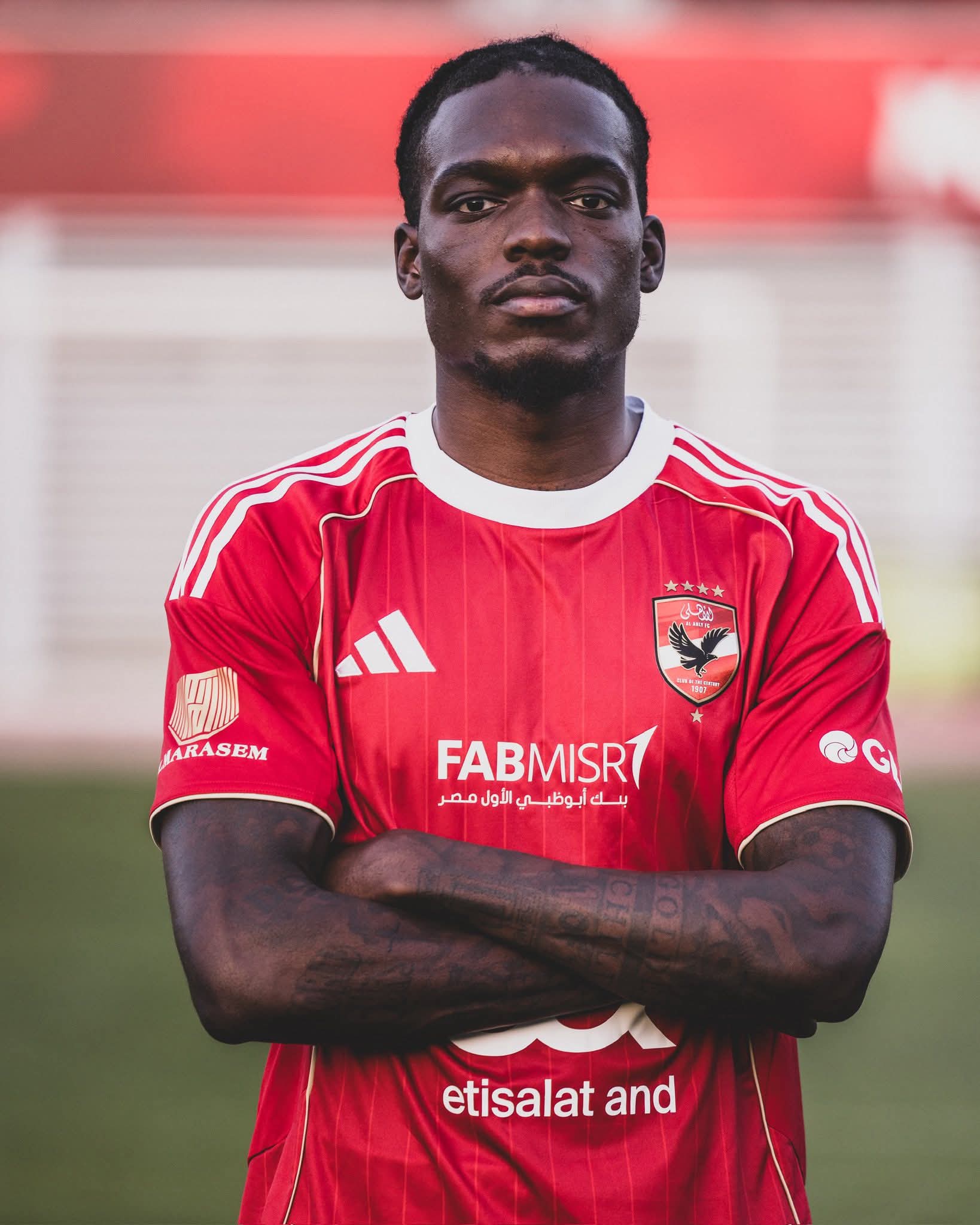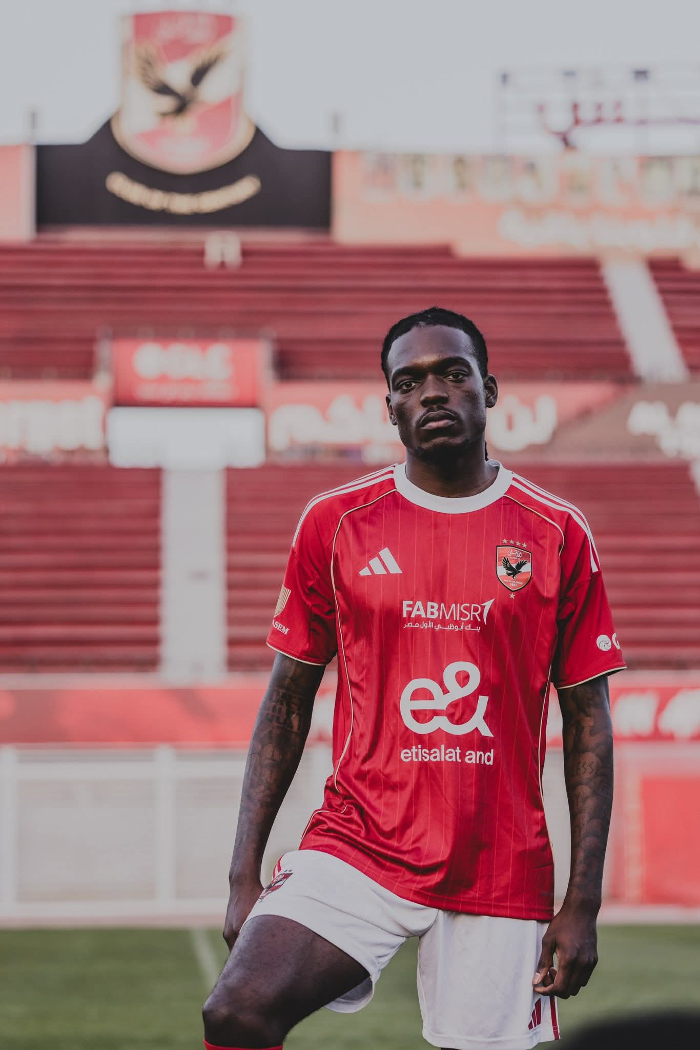 ونشر النادي الأهلي العديد من الصور لتقديم اللاعب للجمهور بملعب مختار التتش بالجزيرة.