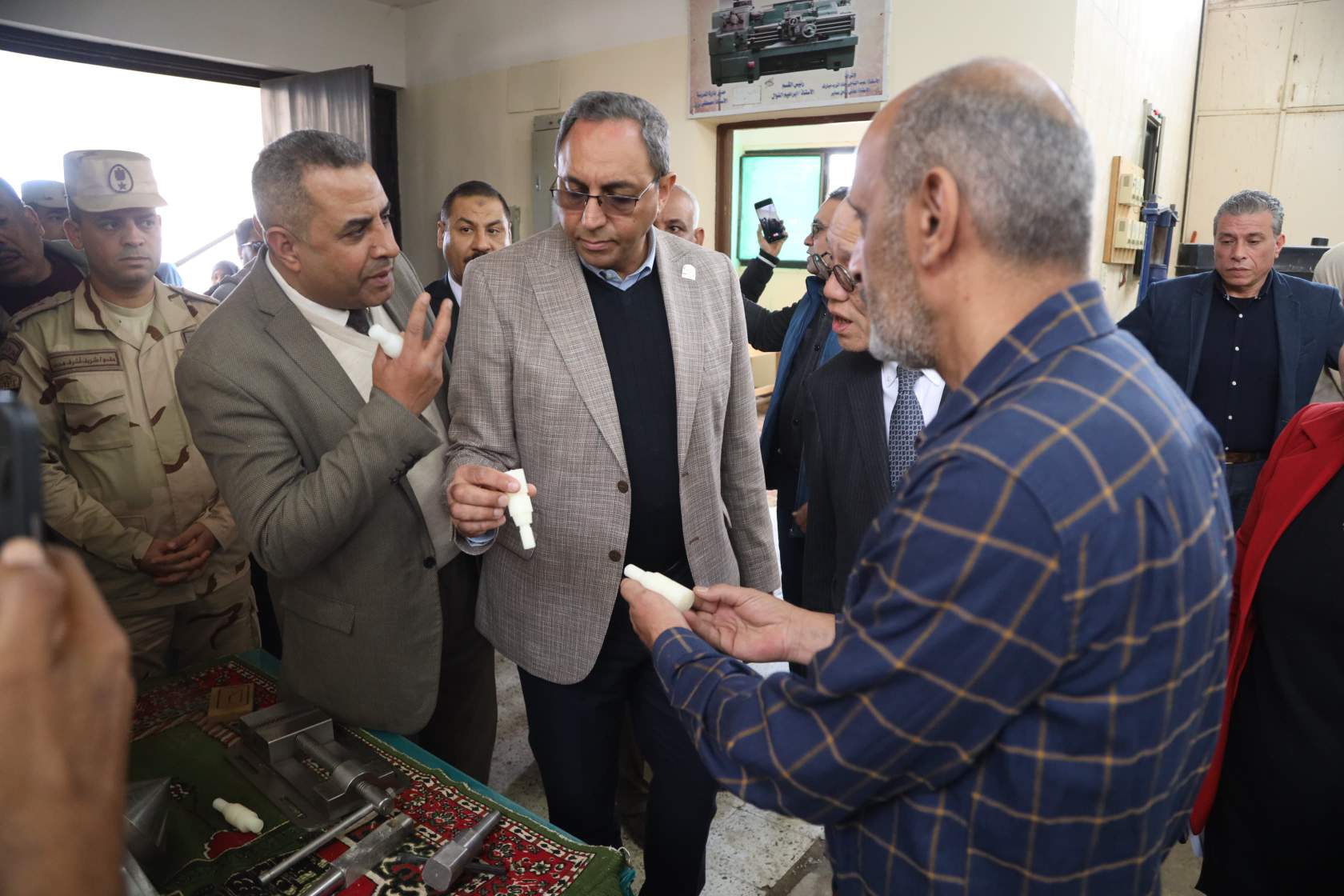 رافقهما خلال الجولة، كل من: أحمد عبد المحسن، وكيل مديرية التربية والتعليم، والدكتور نجم الدين، مدير التعليم الفني، والعقيد شريف أشرف، مكتب المستشار العسكري، والعميد أسامة عبدالرحيم محمد، قائد المدرسة، وأشرف أنور رئيس الوحدة المحلية لمركز ومدينة قنا، وعدد من القيادات التنفيذية.