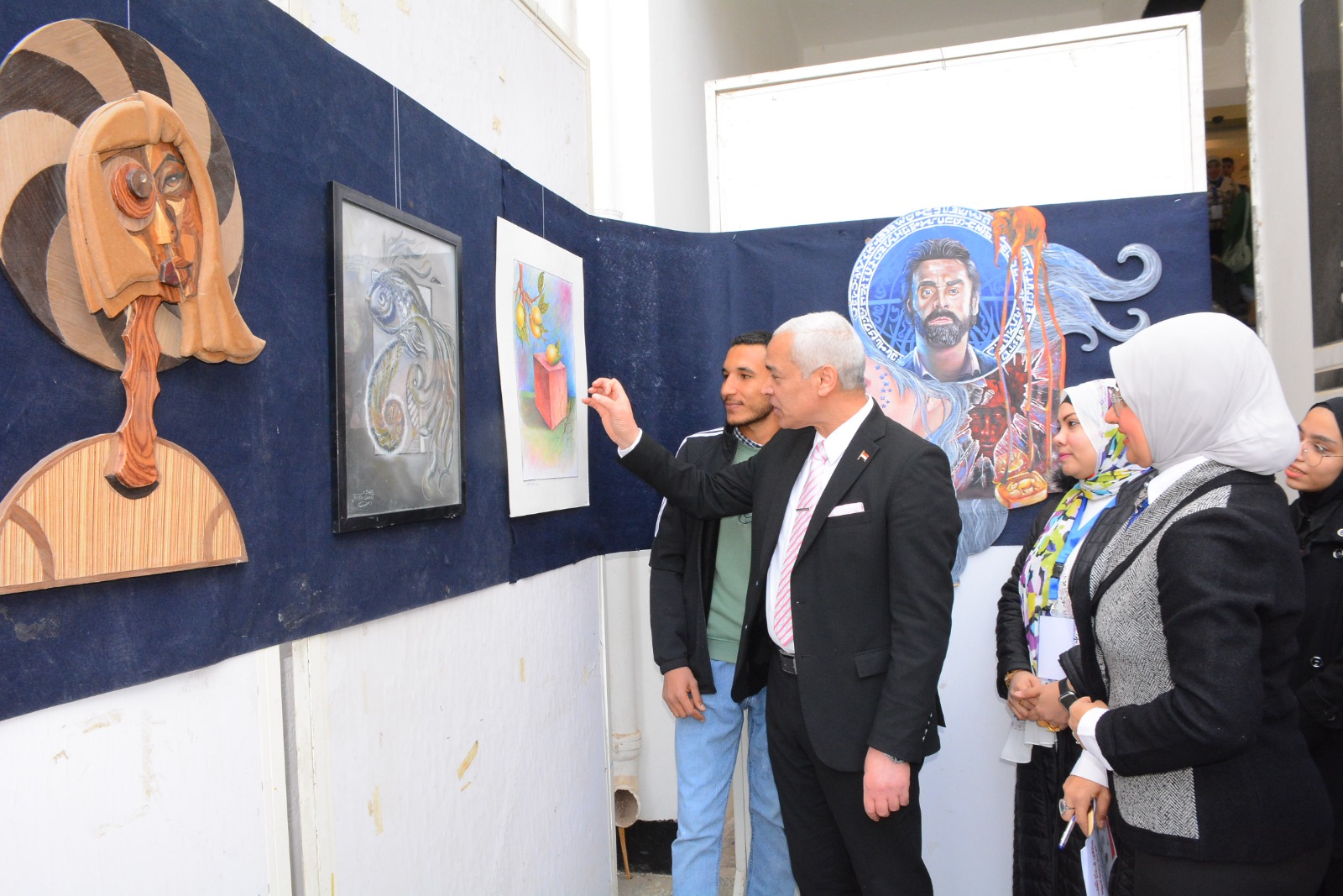 وفي مستهل فعاليات الملتقى، افتتح الدكتور أحمد عبد المولى معرض قسم التربية الفنية بكلية التربية النوعية بجامعة أسيوط، والذي يضم (60) عملًا فنيًا في مختلف تخصصات التربية الفنية، شملت: النحت، والخزف، والنسيج، وأشغال الخشب، وأشغال المعادن، والتصميم، والطباعة، والرسم والتصوير، وذلك تحت إشراف الدكتورة هالة صلاح الدين، رئيس قسم التربية الفنية.