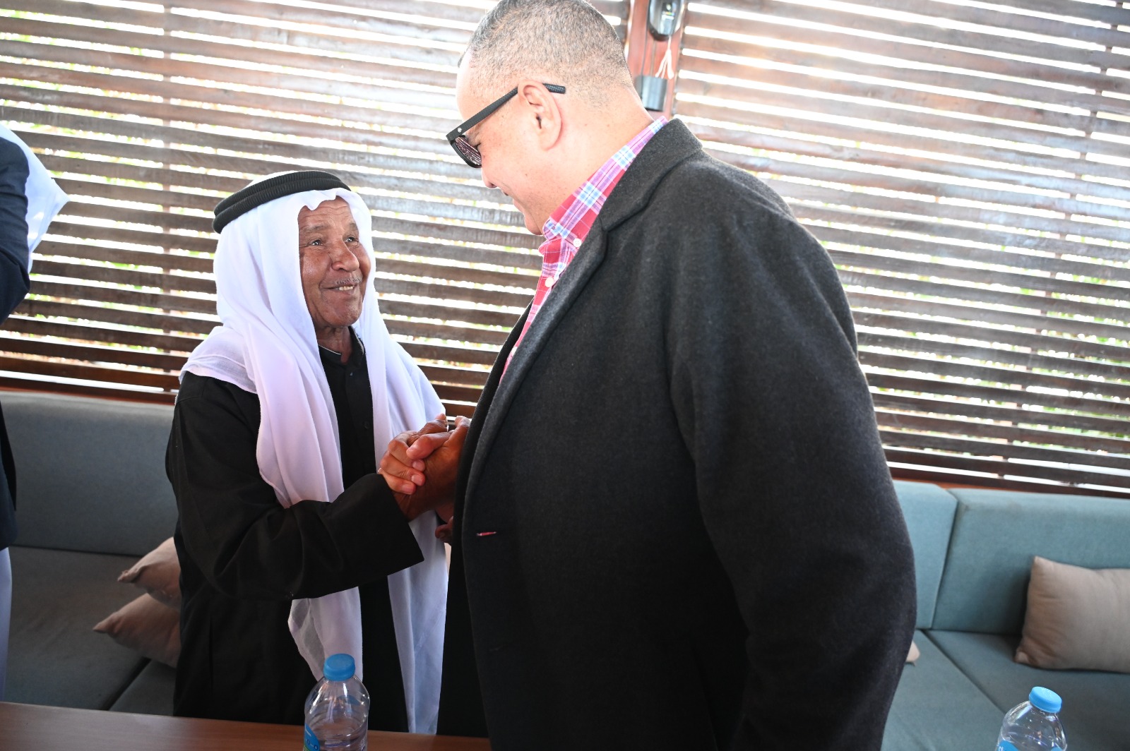 عقد اللواء دكتور خالد مبارك، محافظ جنوب سيناء، لقاءً موسعًا مع مشايخ وعواقل وشباب بدو مدينة دهب، بحضور أعضاء مجلس النواب وعدد من القيادات التنفيذية بالمحافظة، وذلك في إطار حرص الدولة على دعم المجتمعات البدوية وتحقيق التنمية الشاملة بما يتوافق مع رؤية مصر 2030، وتعزيز قنوات التواصل المباشر مع المواطنين والوقوف على مطالبهم واحتياجاتهم الخدمية والتنموية والعمل على إيجاد حلول عملية لها.
