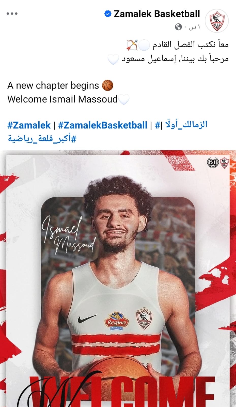 أعلن مجلس إدارة نادى الزمالك، برئاسة الكابتن حسين لبيب، التعاقد مع إسماعيل مسعود، لدعم الفريق الأول لكرة السلة بالنادي، لمدة موسمين ونصف.