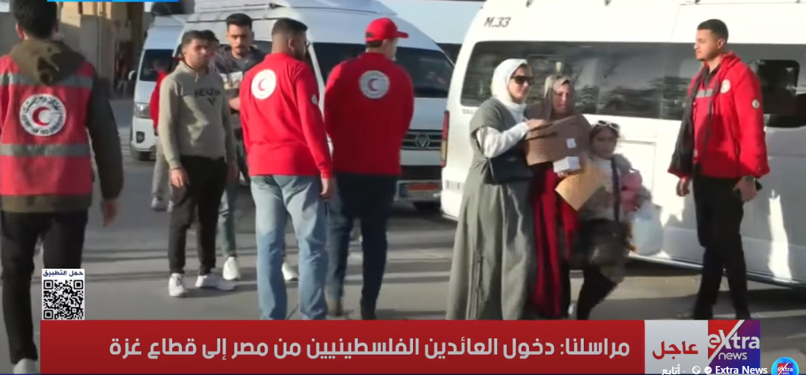 وذكرت قناة (القاهرة) الاخبارية، اليوم أن الدفعة تتضمن أعداد من السيدات والأطفال وكبار السن، مضيفا أن الهلال الأحمر المصري يقوم بتسهيل عملية استقبال العائدين من الفلسطينيين إلى غزة.