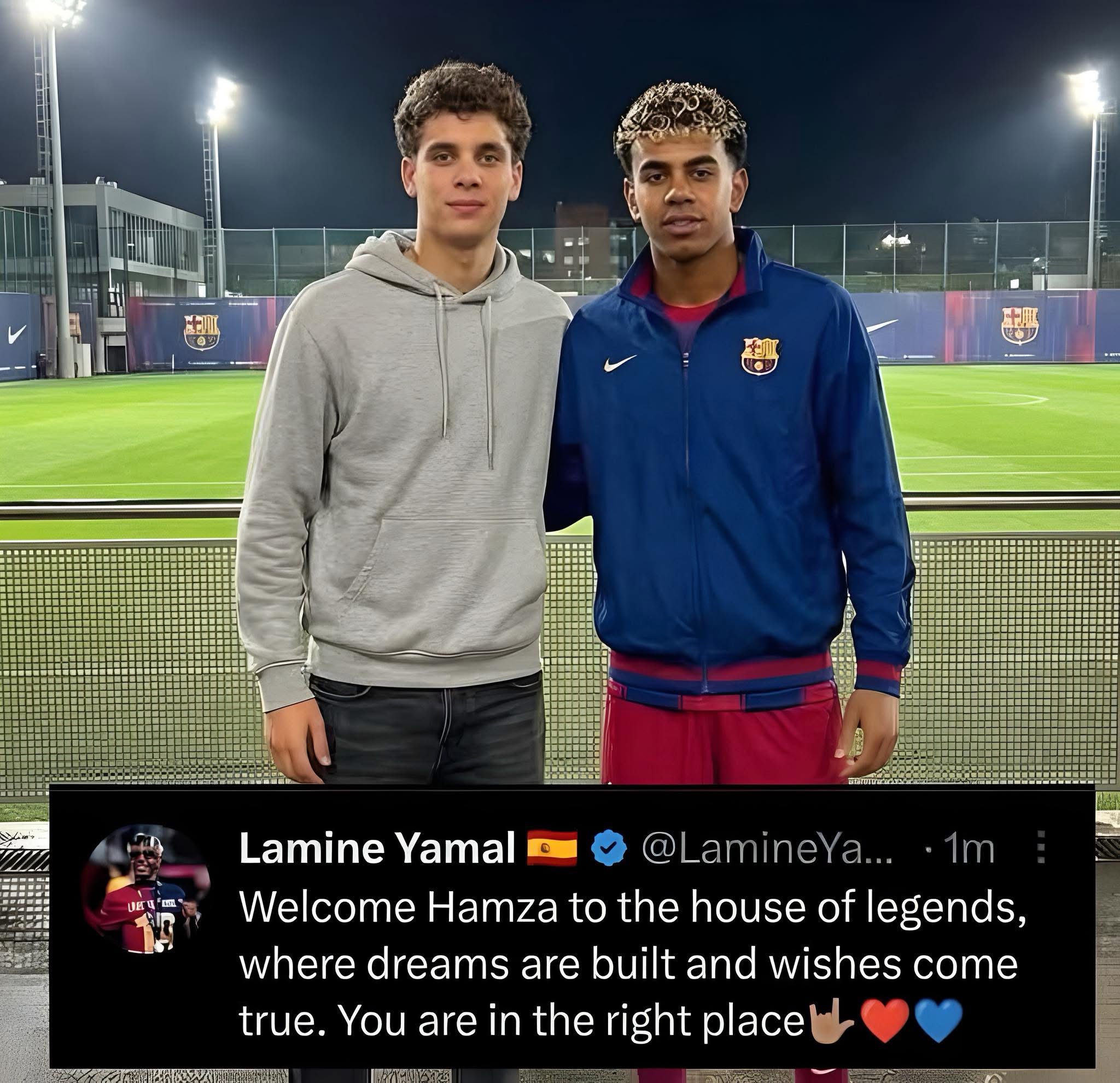 وكتب يامال عبر حسابه الرسمي علي موقع اكس :"مرحباً حمزة في دار الأساطير حيث تبنى الأحلام وتتحقق الأمنيات أنت في المكان الصحيح".