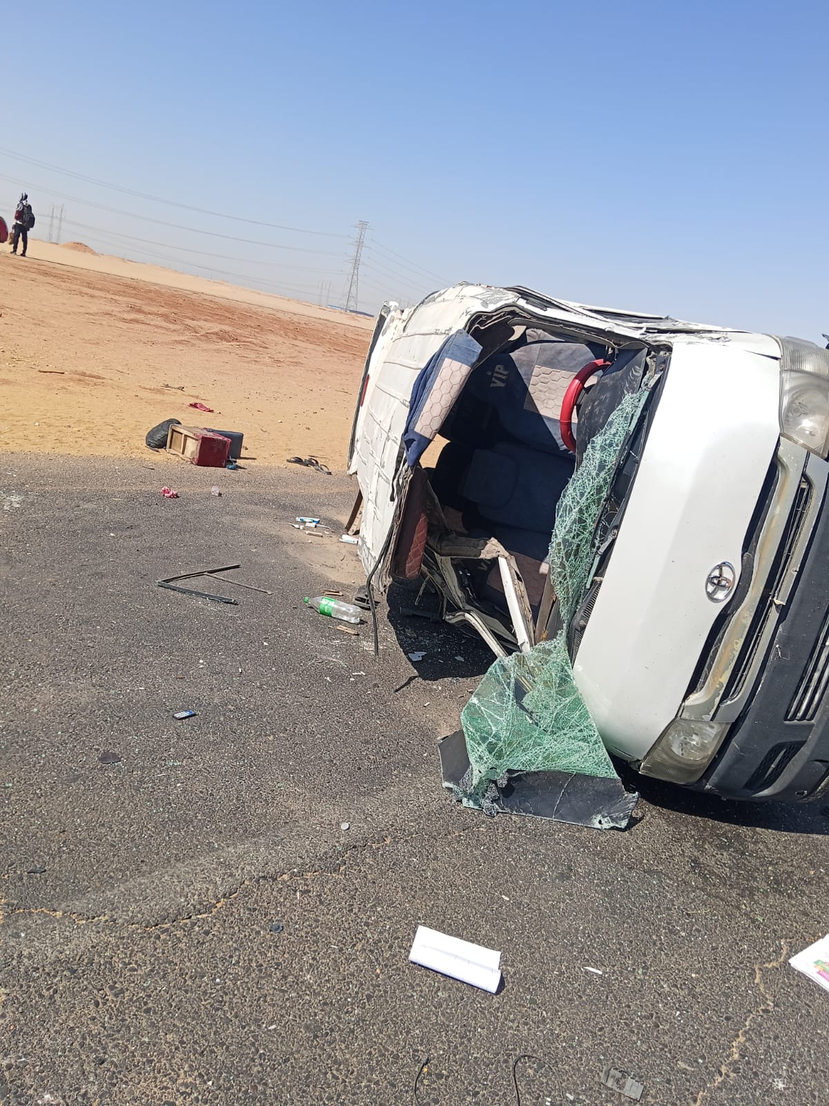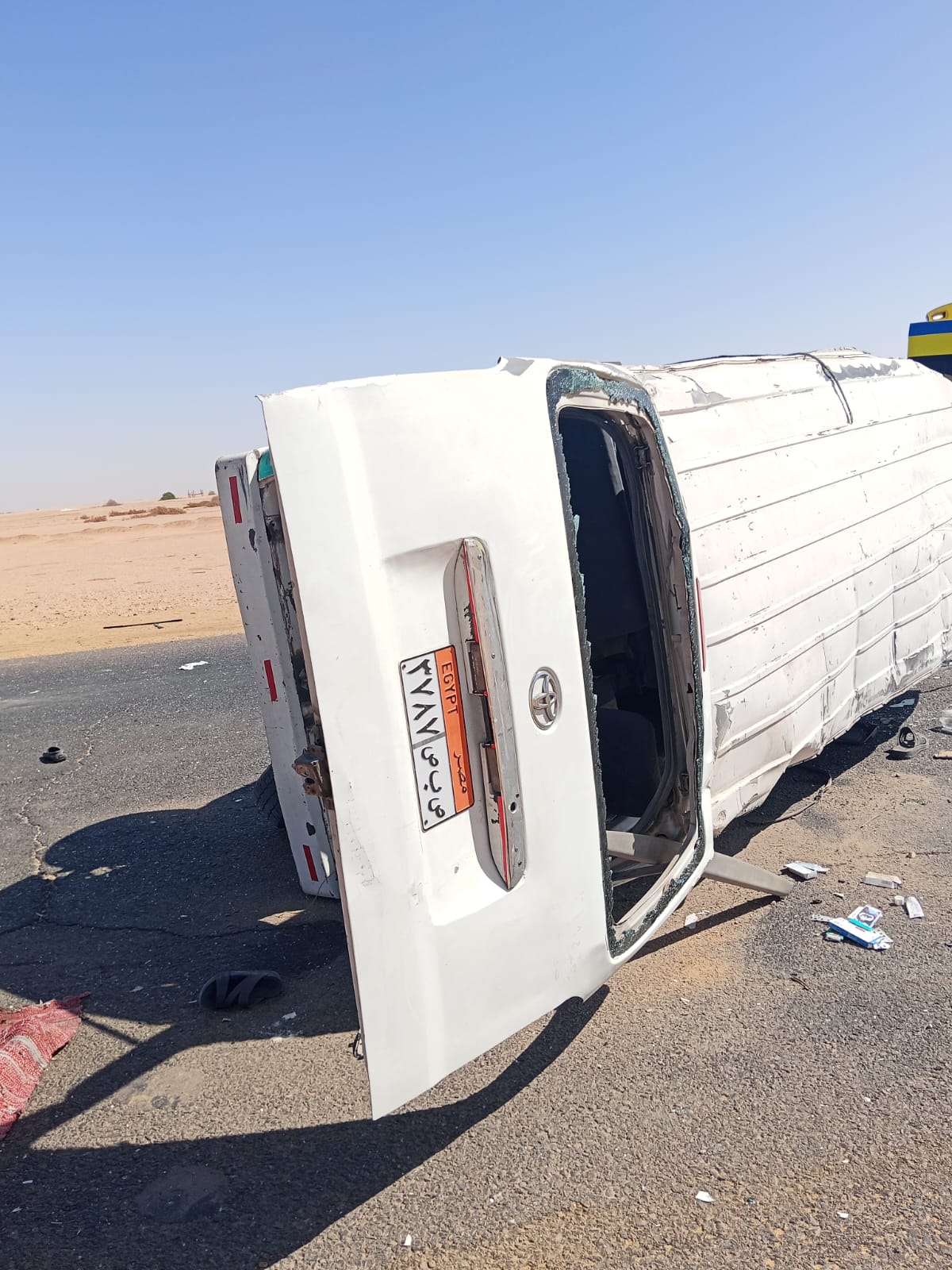 نستعرض الصور الأولى لحادث إنقلاب سيارة ميكروباص بالطريق الصحراوى الغربى أسوان / القاهرة ، والذى أسفر عن مصرع 3 أشخاص وإصابة 14 آخرين .