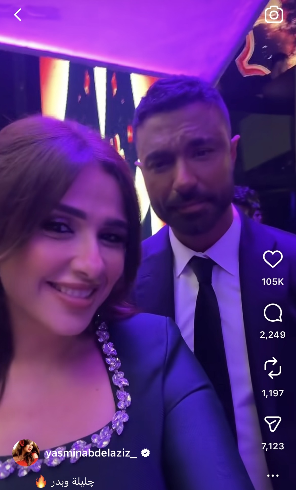 ونشرت ياسمين عبد العزيز فيديو على أغنية “دنا دنا شفت معاه الهنا” ولاقى تفاعلًا من متابعيها على انستجرام.