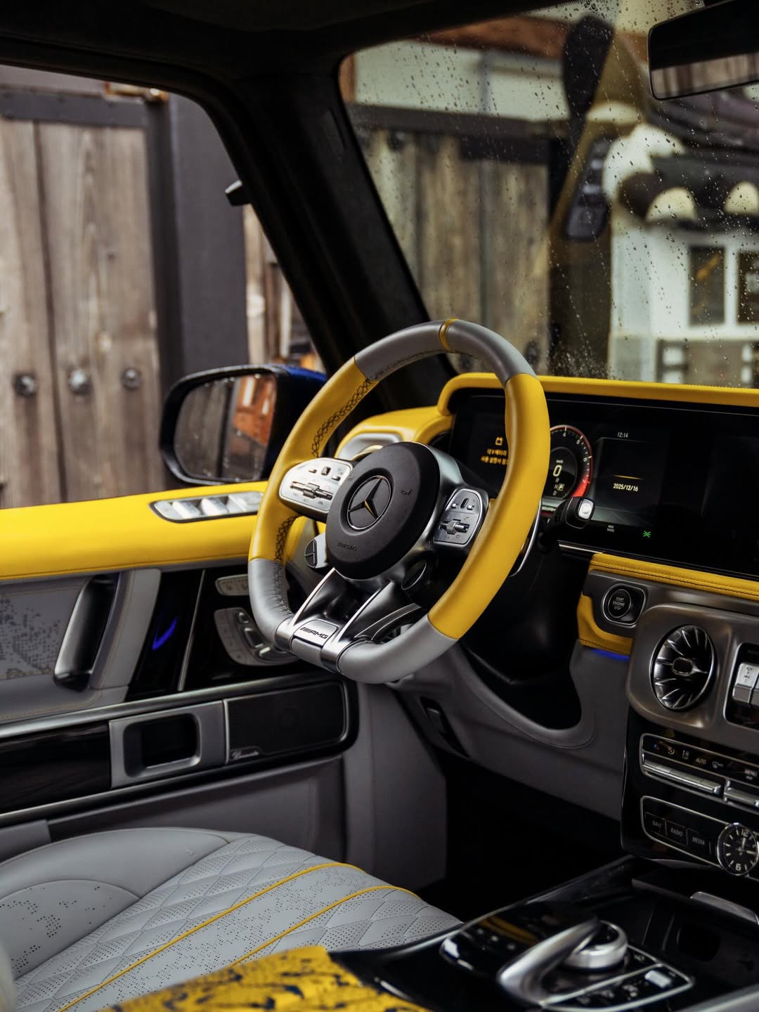 ظهرت G-Class بلمسة لونية مميزة تعتمد على الدمج بين الأزرق البحري Navy Blue والفضي اللامع، مع فاصل أصفر يضيف تباينًا بصريًا واضحًا.