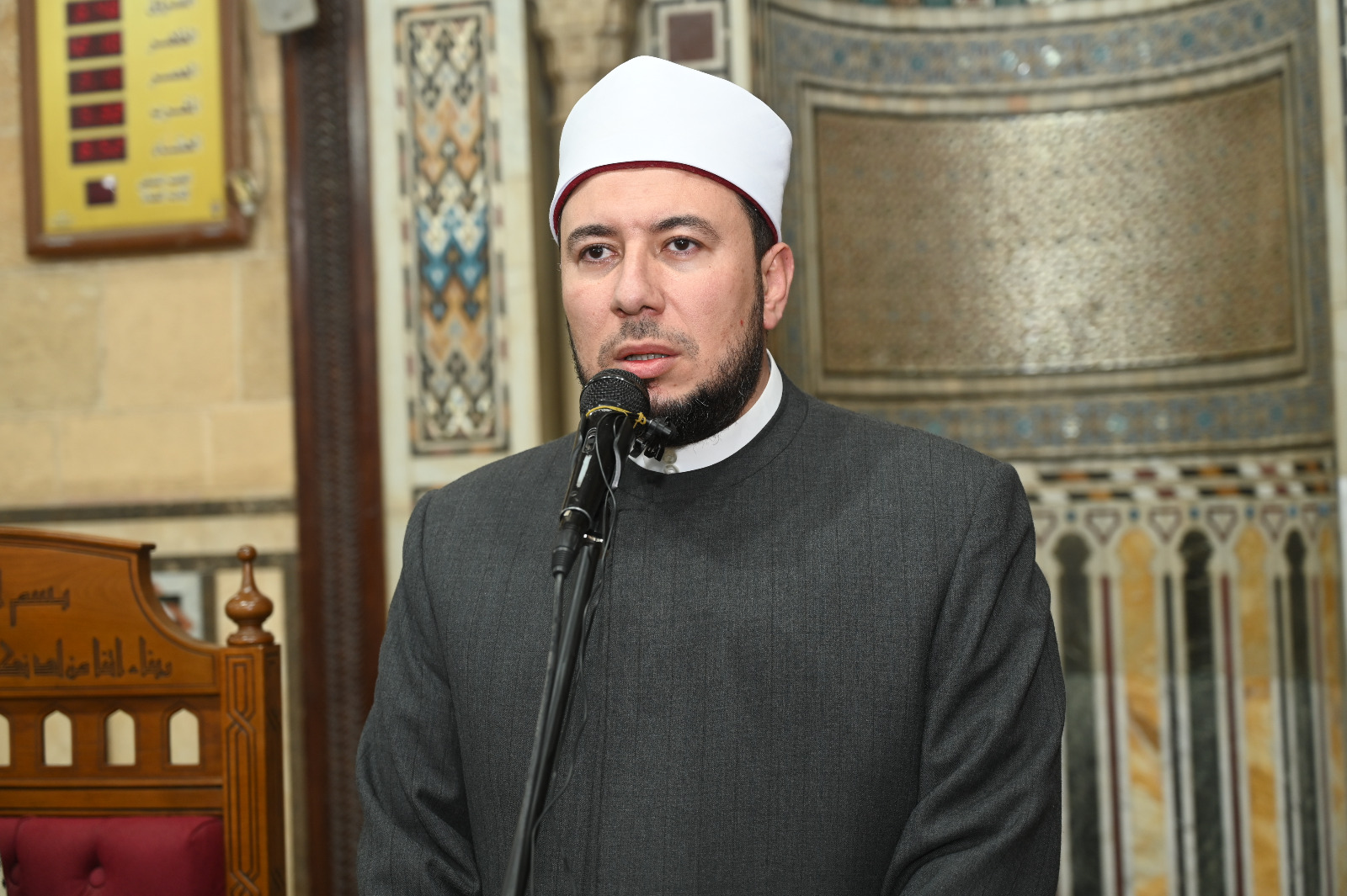 وعقب الكلمات، استمع الحضور إلى وصلة من الابتهالات والمدائح الدينية قدمها فضيلة الشيخ محمد جاد، الذي أمتع الحضور بصوته العذب، مقدمًا مجموعة من الابتهالات التي حملت معاني الرجاء والدعاء والتضرع إلى الله، ما أضفى على الاحتفال أجواءً من الخشوع والسكينة والتأمل.