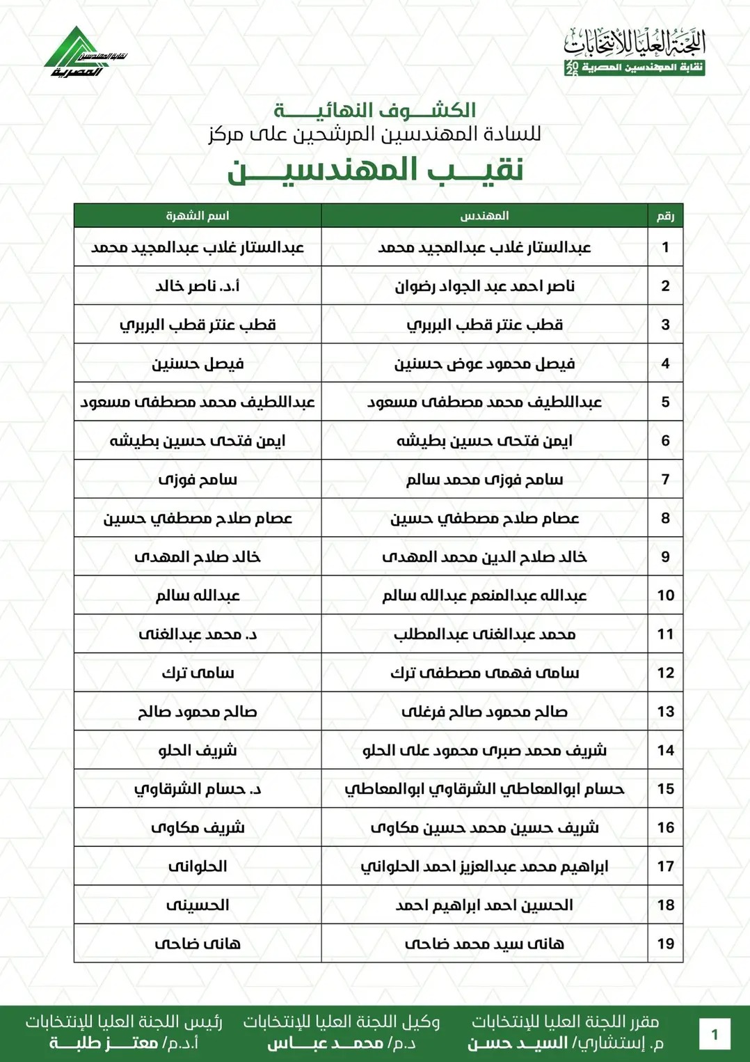 الكشوف النهائية للمرشحين لمنصب نقيب المهندسين
