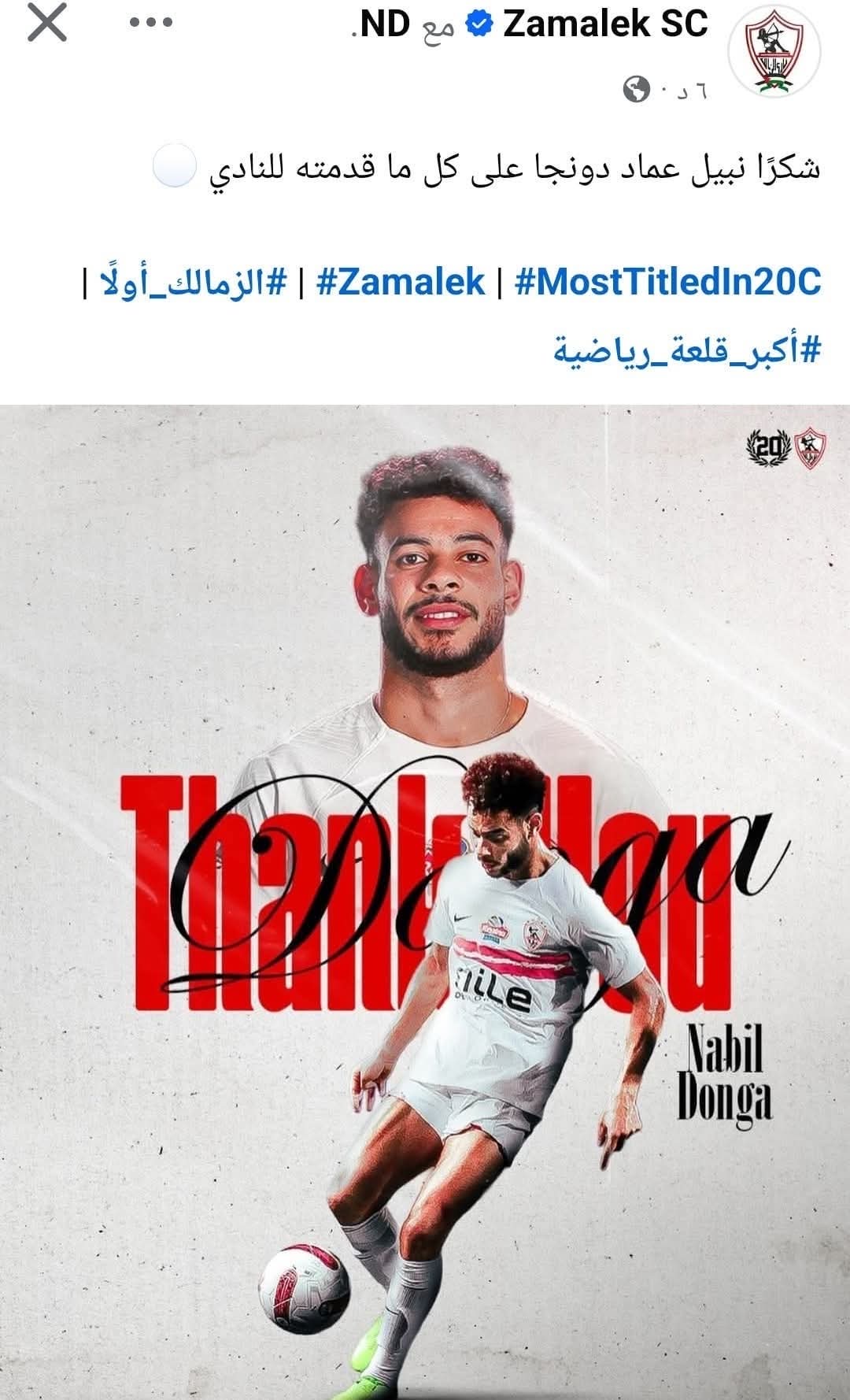 وكتب الحساب الرسمي لنادي الزمالك عبر مواقع التواصل الاجتماعي فيسبوك :" شكرًا نبيل عماد دونجا على كل ما قدمته للنادي".
