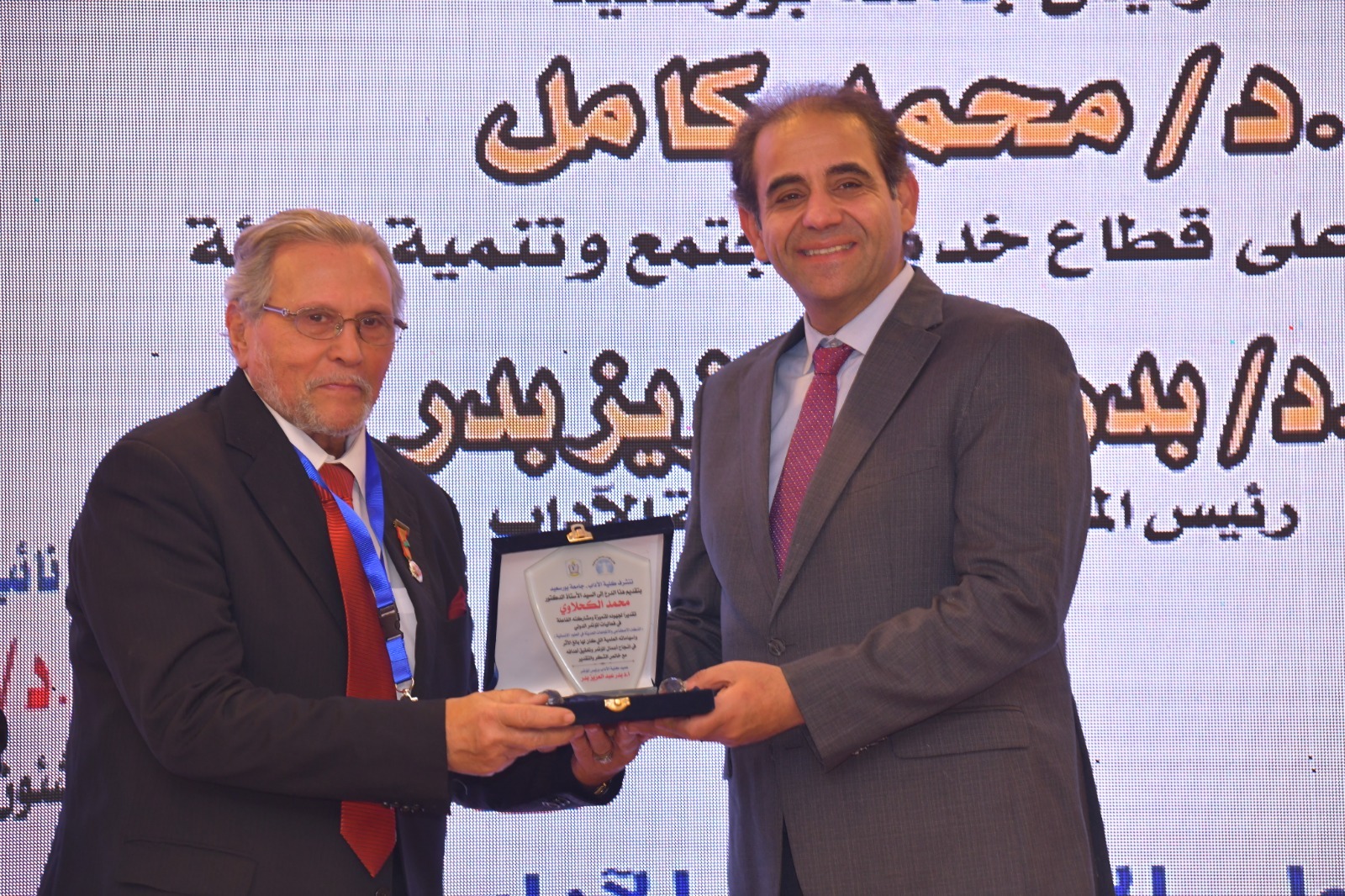 وفي ختام الفعاليات، قام رئيس الجامعة بإهداء درع المؤتمر لكبار العلماء المشاركين من الجامعات المصرية والأجنبية، تقديرًا لإسهاماتهم العلمية ودورهم في إثراء فعاليات المؤتمر.