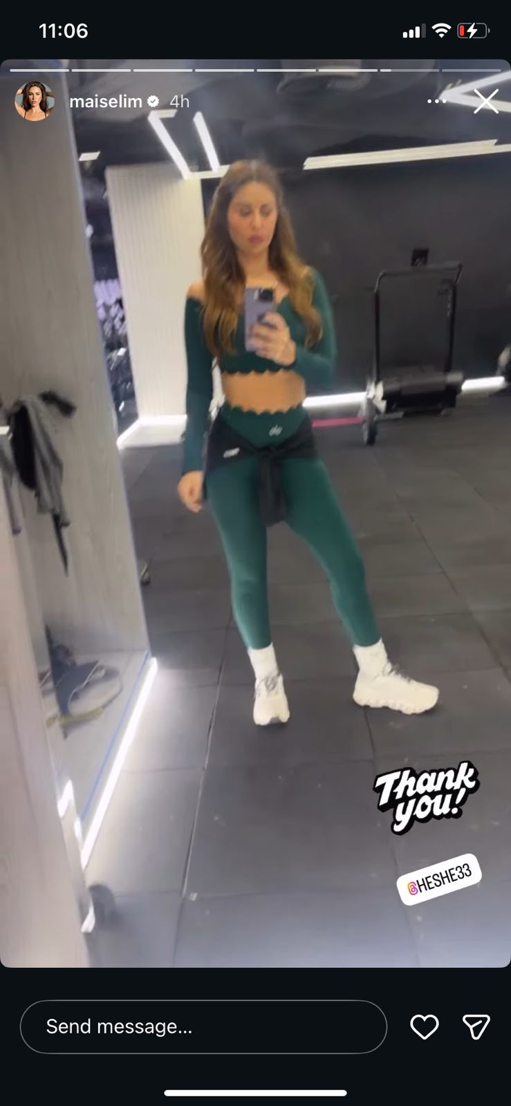 وظهرت مي سليم بإطلالة جذابة لافتة، بملابس رياضية جريئة، من داخل الجيم، أبرزت رشاقتها وجمالها.