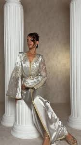 هذا اللون يعكس الضوء بطريقة ناعمة، ويجعل القفطان يبدو أكثر فخامة، خاصة عند تنفيذه بخامات مثل المخمل أو الحرير الثقيل.