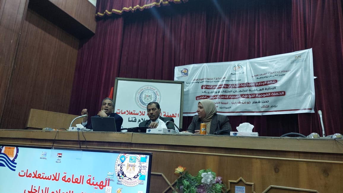 عقد مجمع إعلام قنا، ندوة حول "أبعاد الأمن القومى" بالتعاون مع مديرية الشباب والرياضة بقنا، ضمن فعاليات الحملة القومية للتوعية بأهمية الأمن القومى المصرى، والتى أطلقتها وزارة الشباب والرياضة، تحت شعار “وعي شبابنا.. أمننا القومي”.