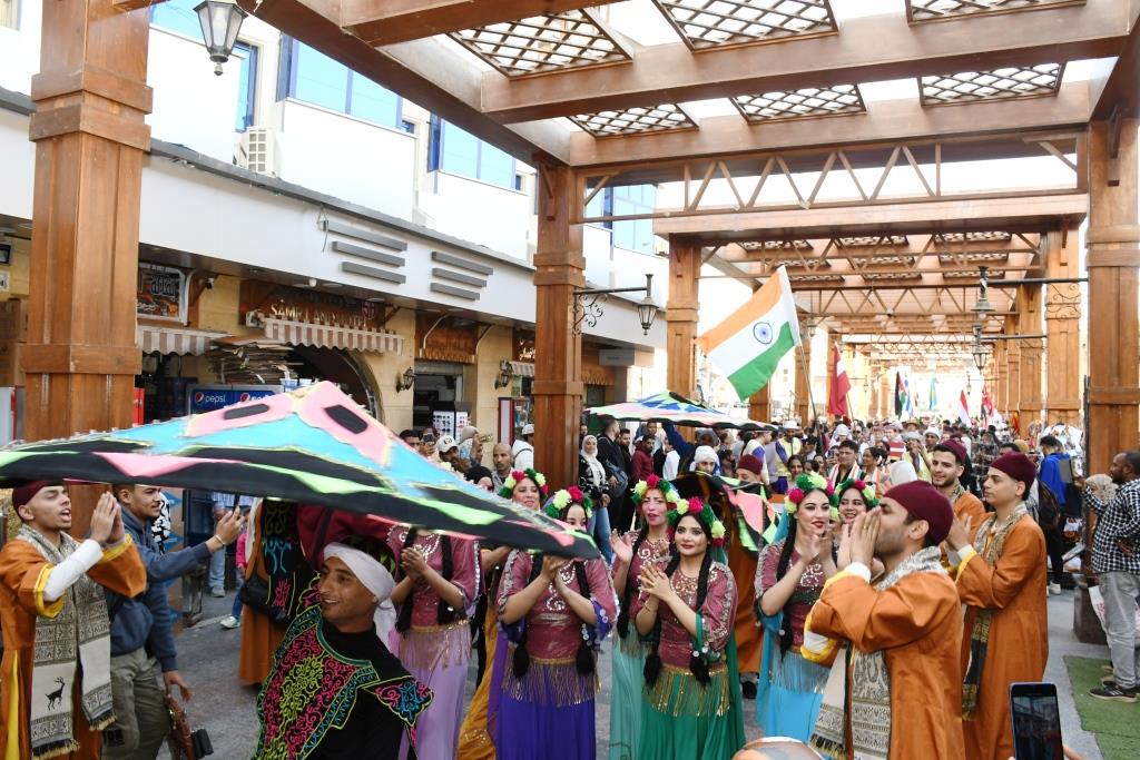 و 6 فرق فنون شعبية مصرية تابعة لقصور الثقافة وتضم فرق أسوان ، العريش ، بورسعيد ، كفر الشيخ ، الأنفوشى ، وبنى سويف فى لوحة فنية تعكس تنوع الثقافات وثراء التراث الإنسانى .