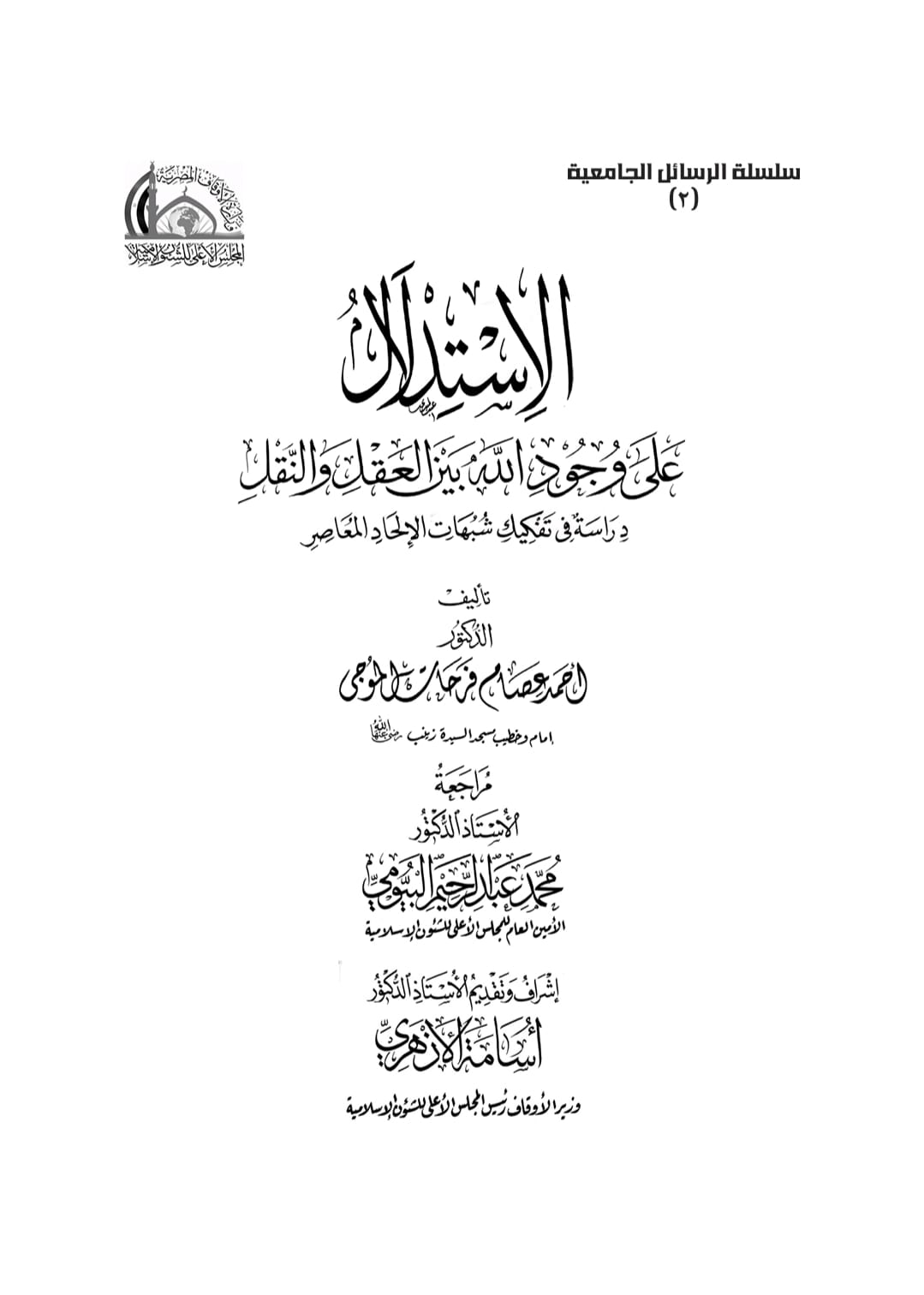 صدر حديثًا عن المجلس الأعلى للشئون الإسلامية بإشراف وتقديم أ.د/ أسامة الأزهري وزير الأوقاف ورئيس المجلس الأعلى للشئون الإسلامية كتاب: "الاستدلال على وجود الله بين العقل والنقل- دراسة في تفكيك شبهات الإلحاد المعاصر" للدكتور أحمد عصام فرحات، إمام وخطيب مسجد السيدة زينب (رضي الله عنها).